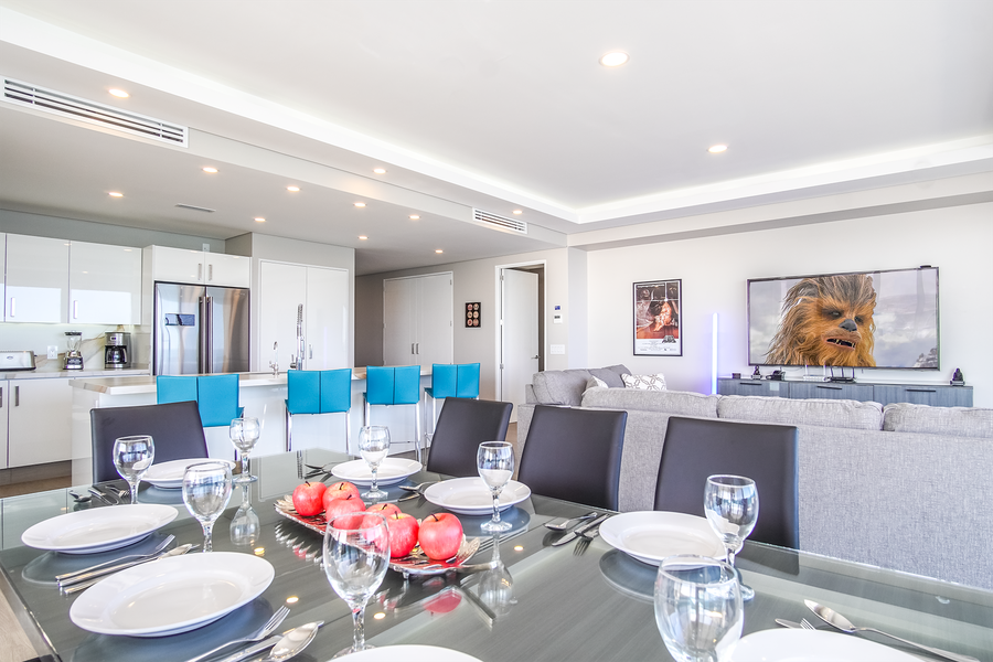 An unmatched beachfront experience can be yours in this three bedroom luxury condominium with a wrap around patio and unbelievable views. This unit uniquely offers touches of Star Wars in its decor that make staying here elegant, and fun!