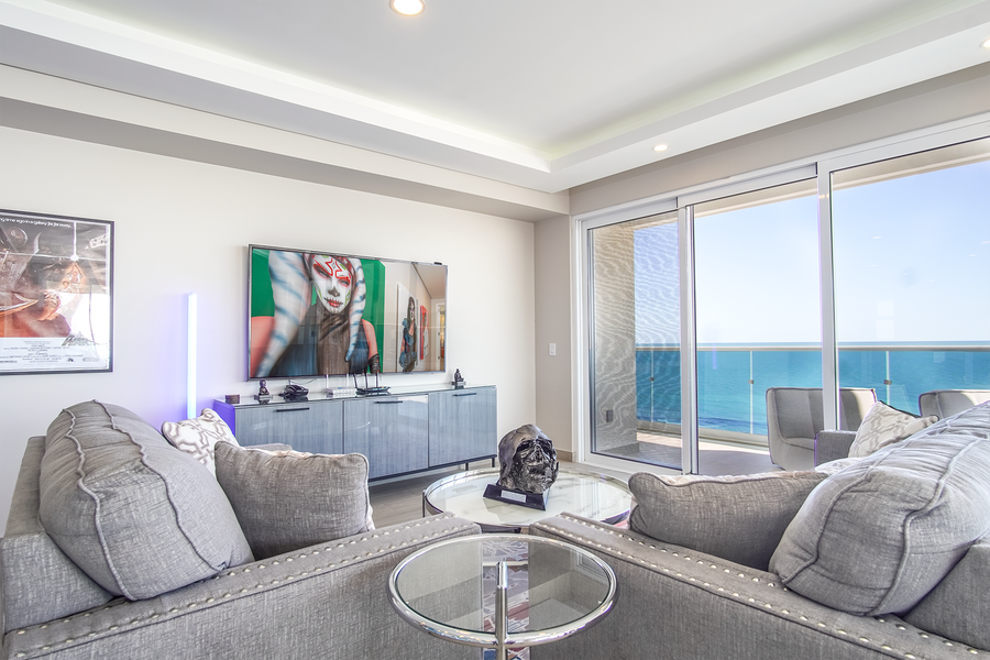 This Encantame Towers condominium is designed around a main living space with a grand kitchen, full living and dining room, and floor to ceiling windows that put you in touch with the ocean and beach like no other unit.