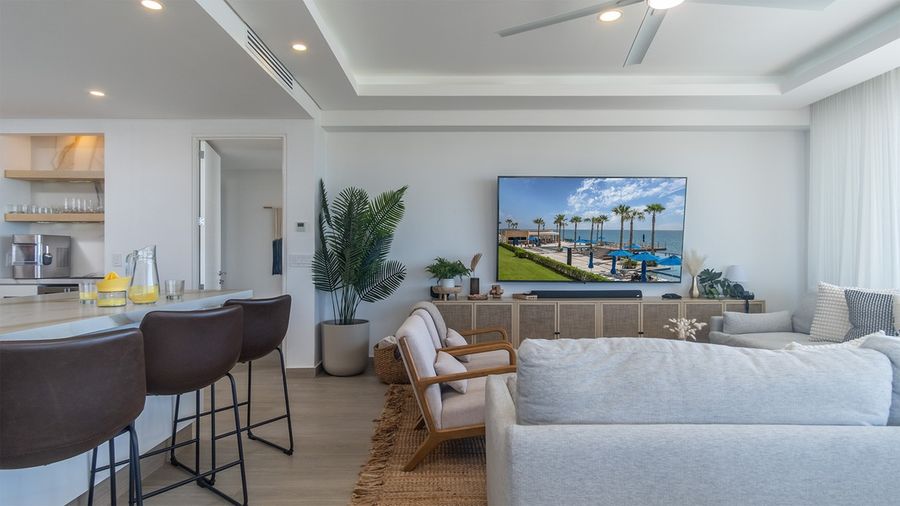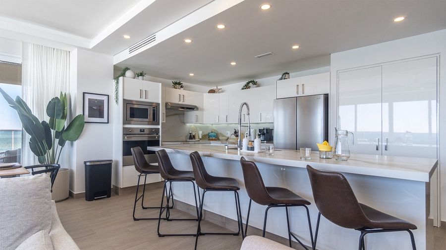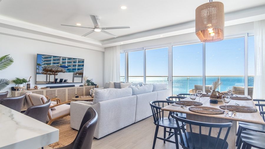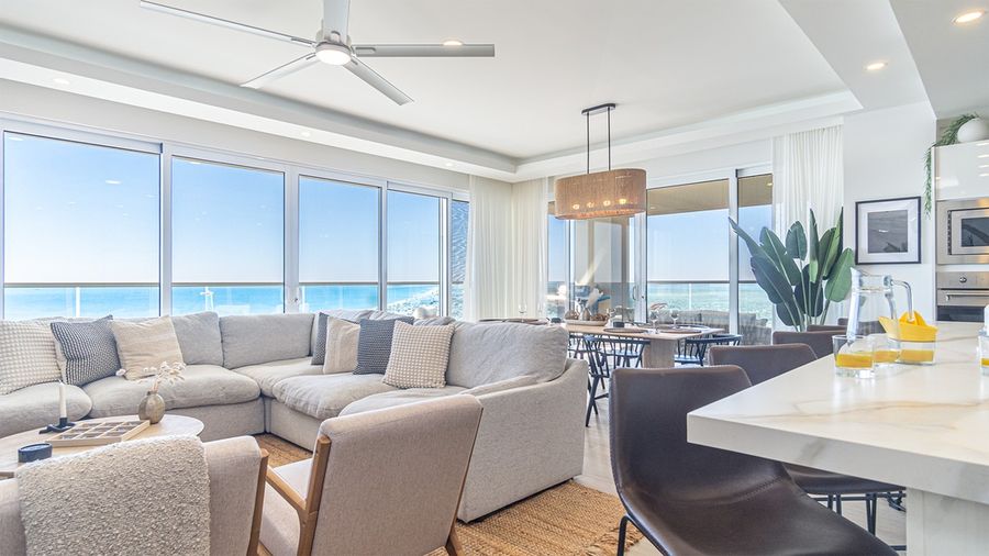 Viento 901 is a stunning end unit, three bedroom condominium at Encantame Towers Resort. Panoramic windows line two sides of the spacious main living space, fully connecting you with the beach Resort environment outside. The unit offers three bathrooms, two walk-in closets, a bar, BBQ grill, and a large complete kitchen. The unique third bedroom presents custom, over-sized built-in bunk beds.