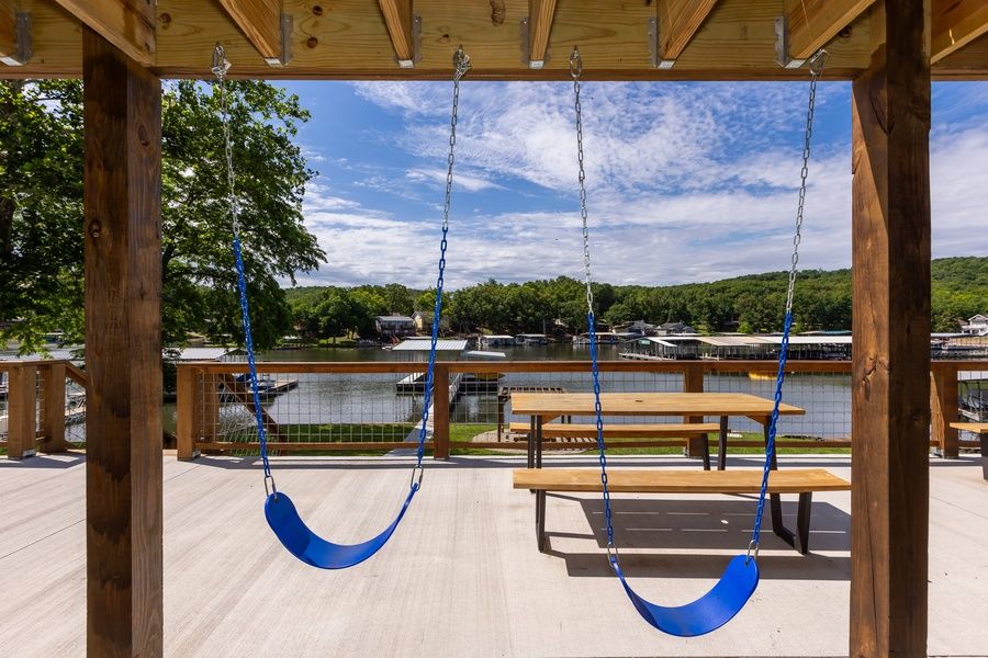 As you step inside, you'll be greeted by a family-friendly layout designed to make your stay as enjoyable as possible. With deck access on both upper and lower levels, you can soak in the stunning lake views from sunrise to sunset. Enjoy your favorite shows al fresco with the outdoor TV, or gather around one of two picnic tables for a lakeside feast. Two high-top areas are also available perfect for sipping your morning coffee or evening cocktails.