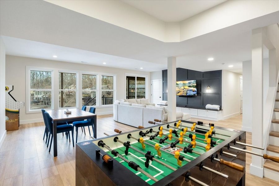 • Entertainment area downstairs with a table, arcade game and foosball w/ wet bar -under-counter fridge
