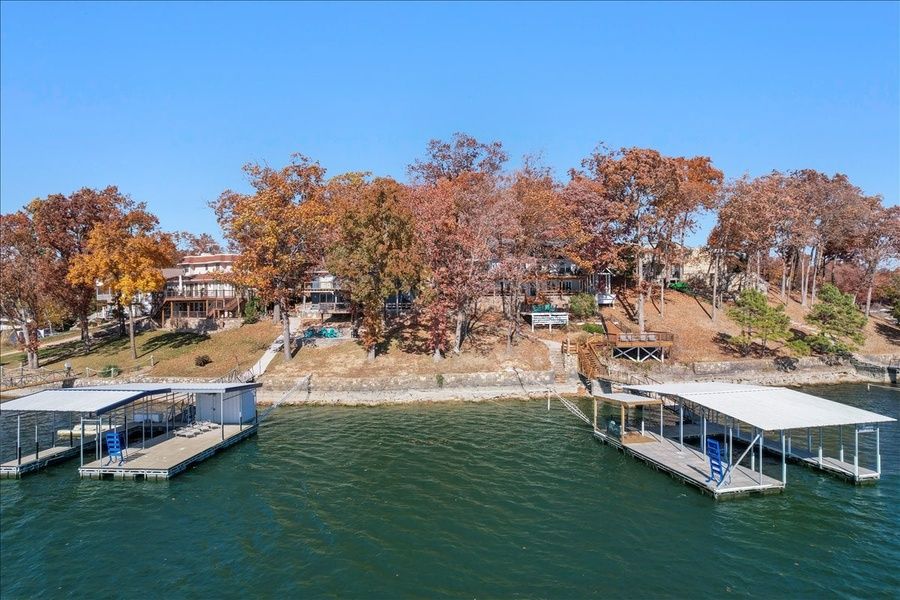 Experience the best of lakeside living with TWO stunning homes combined! Four expansive decks offer breathtaking water views. Enjoy cozy firepit evenings and easy lake access with boat slips. Thoughtfully designed interiors, multiple bedrooms, and inviting living spaces ensure comfort and privacy for all guests. Perfect for tranquil getaways or thrilling lake adventures! Serenity awaits in this ultimate lakeside retreat.