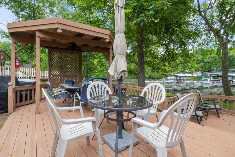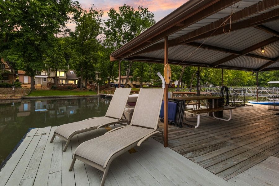 4 Waters Getaway is a cozy cabin-style lakefront home in Sunrise Beach on a quiet cove at the 31-mile marker on Lake of the Ozarks. You'll enjoy a private dock with a swim platform, kayaks, paddle board, and more. Relax on the spacious two-level deck or inside by the large stone fireplace with stunning lake views. From excellent fishing to floating and swimming, grilling and outdoor relaxation, you'll find that 4 Waters Getaway has everything you need for a wonderful family vacation! Great Space and Accommodations for Sleep, Dining, Gathering, and Enjoyment: • Spacious living room, updated kitchen and ample dining seating • Large windows overlooking the lake • Fully equipped kitchen and indoor dining area • Concrete patio and two-level wood deck with ample outdoor seating, grill, and huge firepit • Private dock with swim platform and fishing station, plus kayaks, paddleboard, swim mat, floaties, pool noodles, and fishing gear available • Dock seating for relaxation and lake enjoyment! • This home is a duplex and while each side enjoys a portion of the dock on the water - the duplex areas have their own outdoor enjoyment spaces including each having a grill, patio, fire pit, etc. The dock portion of enjoyment is open for guests use as they wish with the owner utilizing the boat slip for docking access, etc. Outdoor Fun at the Lake Enjoy lakeside living with a private dock that features a swim platform, ladder, and dock seating for lounging by the water. Make the most of your stay with included kayaks, a paddleboard, swim mat, pool noodles, and fishing gear. The two-level wood deck and concrete patio offer plenty of space to gather, dine, or soak up lake views, all just steps from the shoreline. Comfort and Charm Indoors Inside 4 Waters Getaway, guests can unwind in the cozy living room with a large stone fireplace and stunning lake views from a picture window. The home offers 3 comfortable bedrooms and 1.5 bathrooms, along with a 43" smart TV with Roku for entertainment. The well-equipped kitchen and indoor dining area are perfect for shared meals after a day on the water. Things to Do Nearby – Sunrise Beach, MM 31 Located at the 31-mile marker, Sunrise Beach offers easy access to popular lake attractions. Head to Captain Ron’s for beachside dining, live music, and volleyball. Visit Woods Supermarket for groceries or explore the strip in nearby Osage Beach for shopping, go-karts, mini golf, and the Osage Beach Outlet Marketplace. Enjoy waterfront dining at Paradise, Franky -Louie’s, and Bear Bottom Resort, or play a round at The Club at Porto Cima and other nearby golf courses. By night, find live music, casual nightlife, and unforgettable lake vibes. Other Things to Note: •This home is a duplex •We supply propane for the grill • Wood is not provided for the firepit • Wood-burning fireplaces are for decorative purposes only • This property is accessed through a mix of paved, grass, and gravel roads. Drivers may encounter steep hills and narrow roadways. Please use caution while navigating. In winter, roads may ice over and become difficult to navigate. • The minimum age to book this property is 25 years old, and it is best suited for families and groups of friends. • This property does not permit loud parties such as bachelor and bachelorette parties. Gatherings that are responsible and respectful are permitted. For Your Safety and Peace of Mind: • A video/audio doorbell at the entry for secure access • Decibel measuring devices are installed both indoors and outdoors to maintain noise control standards • Smart lock systems for timed guest access, ensuring your safety and convenience • An interior communication panel for Z Wave connection with locks and video doorbell, without video/audio monitoring inside Pet-Friendly Property Guidelines Up to 1 pet is allowed at 4 Waters Getaway • Pet fee of USD20 per night per pet is required. This will be added with the booking or shortly after depending on where you are booking through. • Pets must be on a leash when outside and pets cannot be left unattended outside • Pets must be crated/kenneled when left in the home alone • Pet waste must be picked up and disposed of • Owner shall provide and utilize a “cover” (i.e. blanket/quilt) should the pet get onto furniture • Excessive hair on furniture or bedding and/or not managing pet waste can result in additional fines About Your Host: LakeDays Rentals - Casago is dedicated to offering intentionally crafted lake experiences at Lake of the Ozarks. In partnership with owners who are equally committed to providing amazing vacation stays, our team prioritizes your experience, from pre-arrival inspections to personalized services. With a deep love for the lake and an insider’s perspective on its hidden gems, we’re here to ensure your lake vacation creates lasting memories. We’re honored to serve as your hosts for an exceptional lakeside adventure. Getting There: We highly recommend having a vehicle for your stay. Casago - Lake of the Ozarks has engaged VacayHome to ensure this listing contains all the information you need and that it is easy for you to book via search engines & online channels. VacayHome is connected directly to the property management system used by Casago - Lake of the Ozarks which ensures that availability & rates are up-to-date & accurate. When you book, VacayHome processes payment on behalf of Casago - Lake of the Ozarks and a charge will appear on your statement as "VacayHome". VacayHome will send you a confirmation e-mail that contains all the information you need to prepare for your vacation including arrival instructions. VacayHome has a 24 x 7 team to assist you with any questions or concerns you may have prior to arrival. To access VacayHome, obtain the customer support telephone number or read FAQs, please click on the links at the bottom of this page.
