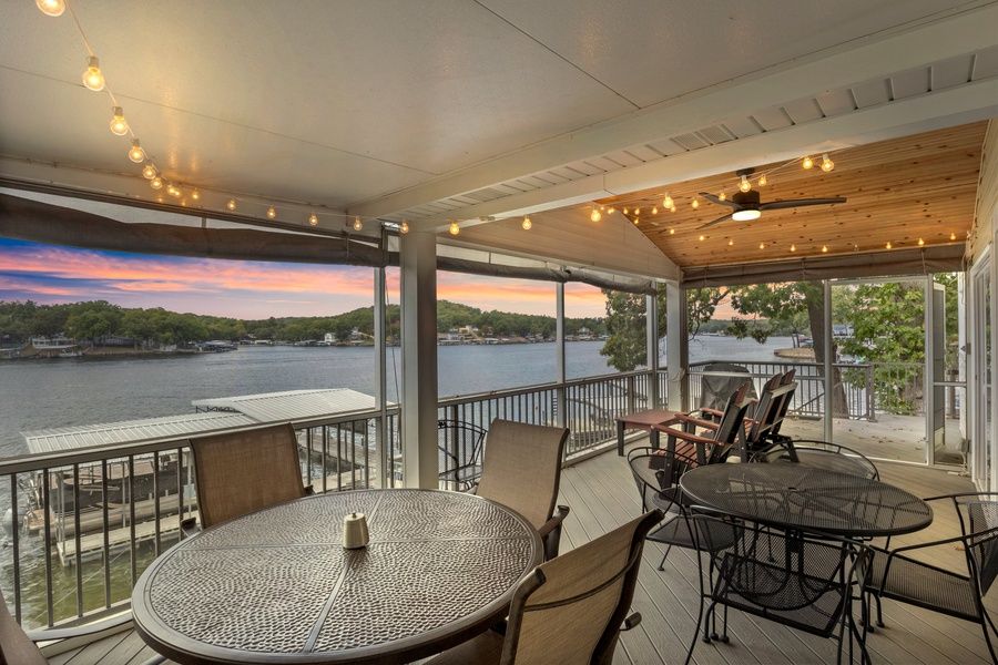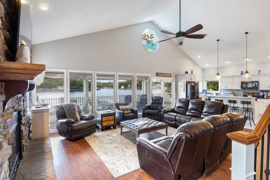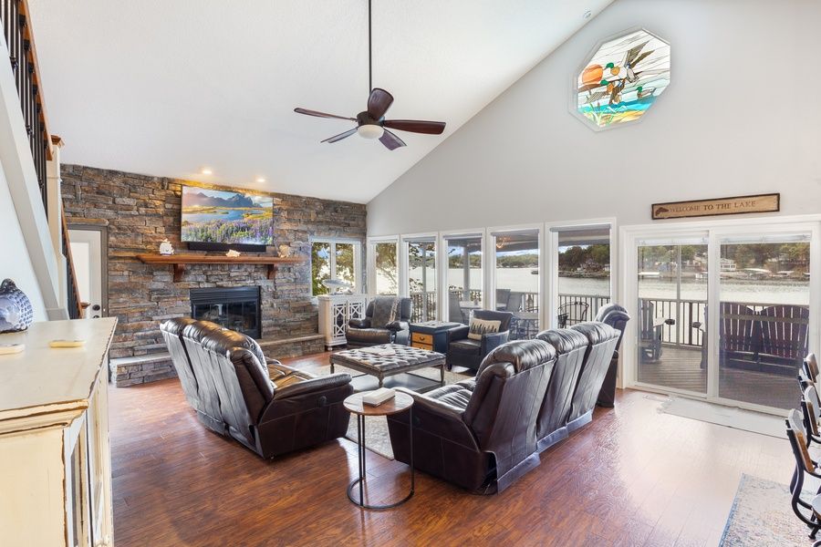 Welcome to your dream lakefront getaway! As you walk through the front door, you’ll be greeted by stunning panoramic views of the lake, guaranteed to make you say, “wow!” This beautifully furnished home features spacious decks perfect for soaking in the view—while the screened porch offers an unobstructed view of the lake, the side deck provides a cozy spot with a tree-shaded view. The living room is the heart of relaxation, complete with high ceilings, leather seating, and large windows letting in natural light. Enjoy time with family or friends playing cards and kids' games available at the living room table. The modern kitchen comes fully equipped with stainless steel appliances, an island for extra seating, and a high chair for the littles. Each bedroom is a peaceful retreat, with the master featuring a king bed, lake-inspired decor, and a private ensuite with a walk-in shower. The private dock is ideal for swimming, kayaking, or gathering for lakeside relaxation. Key amenities include high-speed Wi-Fi, a Smart TV, a fully equipped kitchen, a Blackstone flat-top grill, and a washer/dryer for convenience. The house is easily accessible via paved roads, and the large dock is perfect for socializing or unwinding after a day of lake activities. Whether you're here to relax on the deck, explore the water, or cozy up by the fire pit, this lakefront home promises a memorable escape. Key Features Include: - Spacious Decks with Incredible Views - Screened Porch Just Off The Cozy Living Room - Firepit with seating lakeside to enjoy cozy evenings - Oversized dock in a deep water cove with great lake amenities, including dock seating, 14x40 boat slip (no lift), PWC lift for 2, Fish cleaning station, Swim platform, 2 swim ladders, 2 kayaks, and a swim mat, plus a dock locker that opens to create a bar with a refrigerator and sink! Additional boat(s) may tie up on the opposite side of the dock from the swim platform - Family-friendly amenities include a high-chair, pack-n’-play, and children's books and board games - Modern Kitchen with Appliances, including 2 crock pots, stand mixer and electric griddle - Fully fenced back yard (lakeside) so pets can stay safe and well contained during their visit - Cozy Bedrooms, featuring 3 king rooms and two bunk rooms. Additional sleep spaces available with 2 futons and one twin pull out mattress. - Blackstone Grill on the deck, just off the oversized screen porch with ample seating for enjoying the view or dining - Washer and Dryer for Convenience - Note Interior fireplace is display only. No open flame allowed inside the property. Exclusive to your LakeDays.Rentals stay: - Pack Less Program™ offers full stock service in paper products, toiletries, spices and oils, coffee amenities, and more. - LakeDays by Design™ offers personalized recommendations for your group based on interests, ages -budget. Secure systems for guest -neighborhood safety: - Video / Audio doorbell at entry, as well as unmonitored cameras facing the garage door, parking areas, main entrance, side entrance, dock, and boat for liability purposes. - Decibel measuring devices inside and outside for noise control standards. - Smart lock systems for timed guest access. - Interior communication panel for Z Wave connection with locks and video doorbell - no video/audio on interior communication panel. Pet Friendly Property Guidelines - Pet fee of USD20 per night per pet is required. This will be added with the booking or shortly after depending on where you are booking through - Pets must be on leash when outside and pets cannot be left unattended outside - Pets must be crated / kenneled when left in the home alone - Pet waste must be picked up and disposed of - Owner shall provide and utilize a “cover” (i.e. blanket / quilt) should the pet get onto furniture - Excessive hair on furniture or bedding and / or not managing pet waste can result in additional fees About Your Host LakeDays.Rentals offers intentionally designed lake experiences at Lake of the Ozarks. We partner with owners committed to providing amazing lake vacation stays of all shapes and sizes. Our team focuses on the guest experience from pre-arrival inspections to personalized recommendations. Their love for the lake is complemented by their experience as "locals" with a unique eye to some of the hidden attractions. We know your experience at Lake of the Ozarks will create memories to last a lifetime. We would be honored to host you and your guests! Getting There Ease of access via state highways and blacktop roads. Just 3 hours from St. Louis and Kansas City and a half-day drive from Nebraska, Illinois, Iowa, Kansas, and Arkansas you have great access for families to connect and gather. International airport is in Kansas City and regional airports are available in Columbia and Springfield. Casago - Lake of the Ozarks has engaged VacayHome to ensure this listing contains all the information you need and that it is easy for you to book via search engines & online channels. VacayHome is connected directly to the property management system used by Casago - Lake of the Ozarks which ensures that availability & rates are up-to-date & accurate. When you book, VacayHome processes payment on behalf of Casago - Lake of the Ozarks and a charge will appear on your statement as "VacayHome". VacayHome will send you a confirmation e-mail that contains all the information you need to prepare for your vacation including arrival instructions. VacayHome has a 24 x 7 team to assist you with any questions or concerns you may have prior to arrival. To access VacayHome, obtain the customer support telephone number or read FAQs, please click on the links at the bottom of this page.