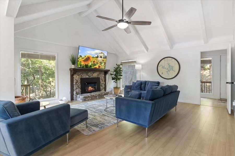 Welcome to your dream lake home, spacious with modern upgrades throughout, including newly remodeled interiors and an electric fireplace with a remote control. The kitchen shines with brand-new granite countertops and all-new stainless-steel appliances. Step outside onto the new deck and indulge in relaxation with the serene beauty of lake views. Enjoy exclusive lake access with a private dock, boat slip, and two personal watercraft spots. With friendly neighbors and a tranquil atmosphere, this is more than just a home—it's your own private retreat.