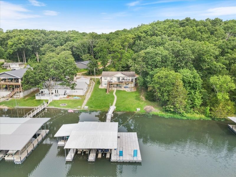 Ripple Cove Hideaway is a 5-bedroom, 3-bath lakefront home at the 34 MM of Lake of the Ozarks, just a few houses down from Captain Ron's Bar and Grill at the end of a quiet cove. With a private dock, 11x28 boat slip, kayaks, lakeview deck, and firepit table, this retreat is perfect for families and friends. Inside, enjoy a fully equipped kitchen, kids' toys and dress up costumes, and sweeping lake views. This getaway offers everything you need for lakeside living and unforgettable memories. Great Space and Accommodations for Sleep, Dining, Gathering, and Enjoyment: • 5 bedrooms and 3 full bathrooms, comfortably accommodating families or groups • Fully equipped kitchen with all the essentials • Kids' toys, costumes, dishes, and Pack 'n Play provided for family stays • Open-concept main level with lake views and natural light • Comfortable indoor dining and outdoor seating for al fresco meals • Private dock with swim platform, swim ladder, seating, and a boat slip • A kayak, paddle board, and floaties available for lake adventures • Patio with umbrella seating for 6 and propane fire table for evening relaxation • Tyvek decking with stairs to lake level for easy access • Pellet grill smoker for outdoor cooking Lake Fun at Your Doorstep Guests will love spending time outside at Ripple Cove Hideaway. The private dock at the end of the cove features a 11x28 boat slip, swim platform, ladder, dockside seating, and even a fish-cleaning station for anglers. Two kayaks and floaties are included, offering hours of lake fun. The upper deck and covered lower patio offer seating with lake views, and the firepit table and pellet grill smoker create the perfect lakeside evening setup. Comfort and Connection Indoors Inside, the home is designed for relaxation and connection. With 5 bedrooms and 3 full bathrooms, there's plenty of space for everyone to spread out. A fully equipped kitchen makes mealtime easy, and kids will love the toys and the provided Pack 'n Play. Large windows provide beautiful lake views and natural light, making the space feel warm and inviting for families or friend groups alike. Explore Nearby – MM 34 and Missouri Attractions Located at the 34 Mile Marker in Missouri, Ripple Cove Hideaway places guests near top Lake of the Ozarks attractions. Visit Captain Ron's for beachfront dining and live music, or head to Franky and Louie's just a short drive away for sandy shores and casual bites. Larry's on the Lake, The Branding Iron, and Bear Bottom Resort offer great options for food, drinks, and fun. Shopping at The Landing on Main Street and mini-golf or go-karts add family-friendly entertainment nearby. Golf lovers can explore local courses like Indian Rock Golf Club within a 20-minute drive. Other Things to Note: • We supply propane for the firepit table • This property has an electric grill (pellet smoker) • This property is accessed through a mix of paved and gravel roads. Drivers may encounter rough and narrow roadways. Please use caution while navigating. In winter, roads may ice over and become difficult to navigate. • The minimum age to book this property is 25 years old, and it is best suited for families and groups of friends. • This property does not permit smoking on the entire premises, including both indoors and outdoors. For Your Safety and Peace of Mind: • A video/audio doorbell at the entry for secure access • Decibel measuring devices are installed both indoors and outdoors to maintain noise control standards • Smart lock systems for timed guest access, ensuring your safety and convenience • An interior communication panel for Z Wave connection with locks and video doorbell, without video/audio monitoring inside About Your Host: LakeDays Rentals - Casago is dedicated to offering intentionally crafted lake experiences at Lake of the Ozarks. In partnership with owners who are equally committed to providing amazing vacation stays, our team prioritizes your experience, from pre-arrival inspections to personalized services. With a deep love for the lake and an insider's perspective on its hidden gems, we're here to ensure your lake vacation creates lasting memories. We're honored to serve as your hosts for an exceptional lakeside adventure. Getting There: We highly recommend having a vehicle for your stay. Rideshare companies like LakeRide Pros are available, however, we recommend that you book well in advance. You will have ease of access via state highways and blacktop roads. This property is located approximately 3 hours from St. Louis and Kansas City, and a half-day drive from Nebraska, Illinois, Iowa, Kansas, and Arkansas, creating great access for families and friends to connect and gather! The international airport is in Kansas City, and regional airports are available in St. Louis, Columbia, and Springfield. Location Activities: Amazing activities are available throughout the lake area all year long. Casago - Lake of the Ozarks has engaged VacayHome to ensure this listing contains all the information you need and that it is easy for you to book via search engines & online channels. VacayHome is connected directly to the property management system used by Casago - Lake of the Ozarks which ensures that availability & rates are up-to-date & accurate. When you book, VacayHome processes payment on behalf of Casago - Lake of the Ozarks and a charge will appear on your statement as "VacayHome". VacayHome will send you a confirmation e-mail that contains all the information you need to prepare for your vacation including arrival instructions. VacayHome has a 24 x 7 team to assist you with any questions or concerns you may have prior to arrival. To access VacayHome, obtain the customer support telephone number or read FAQs, please click on the links at the bottom of this page.