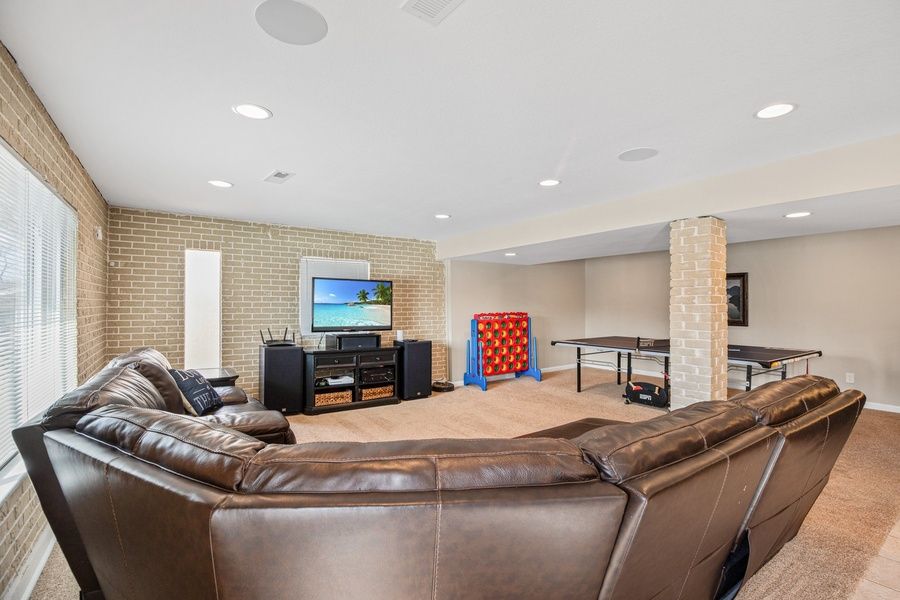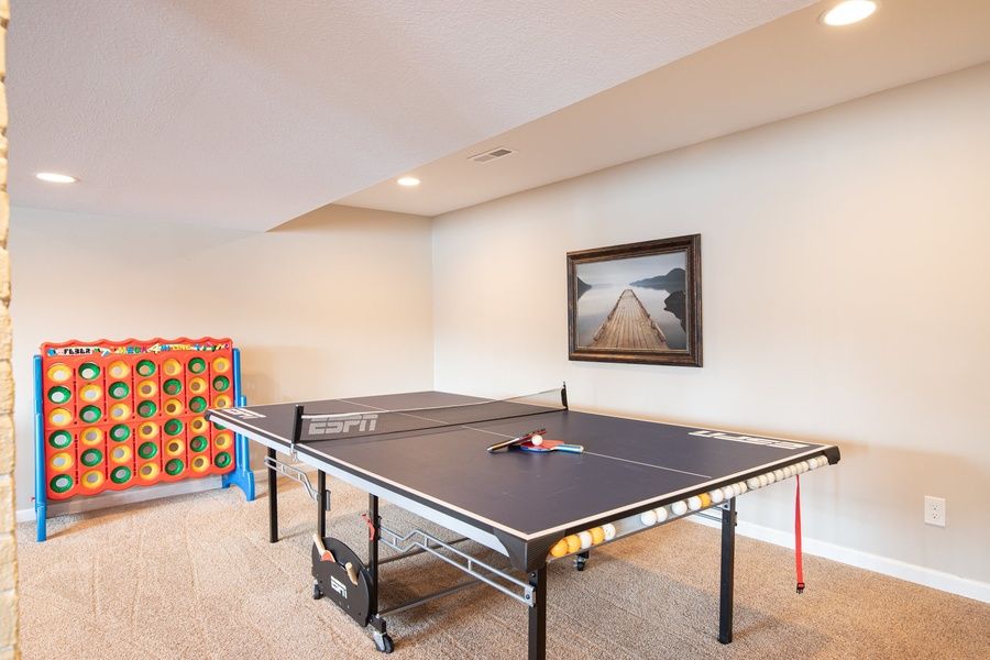 • Living room features large entertainment space with ping pong table, video games, 5.1 surround sound and huge collection of DVDs, movies and games for rainy or cold days