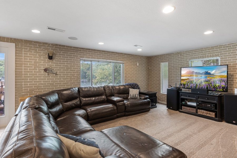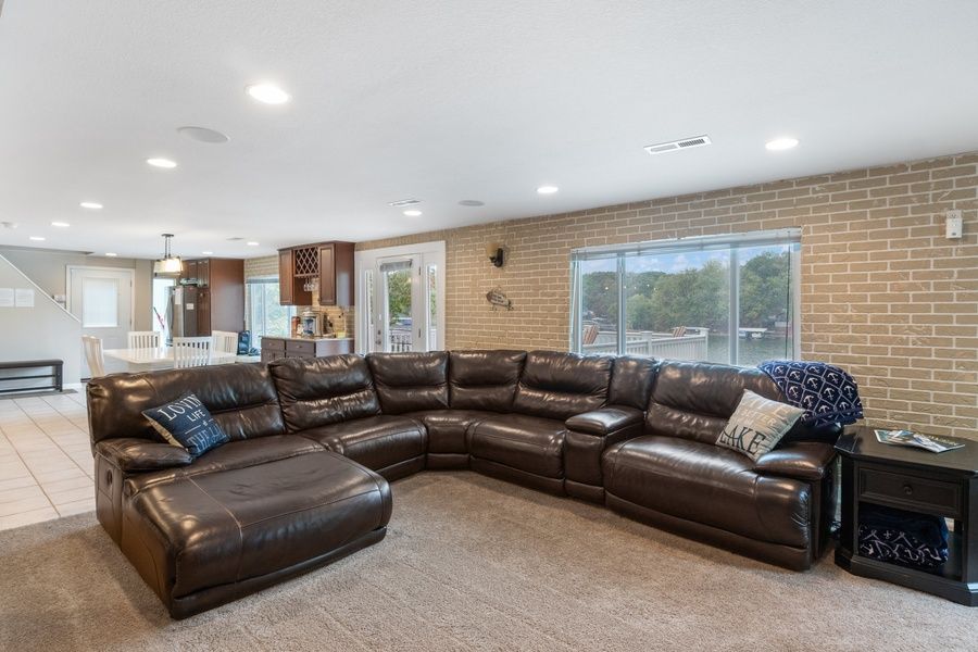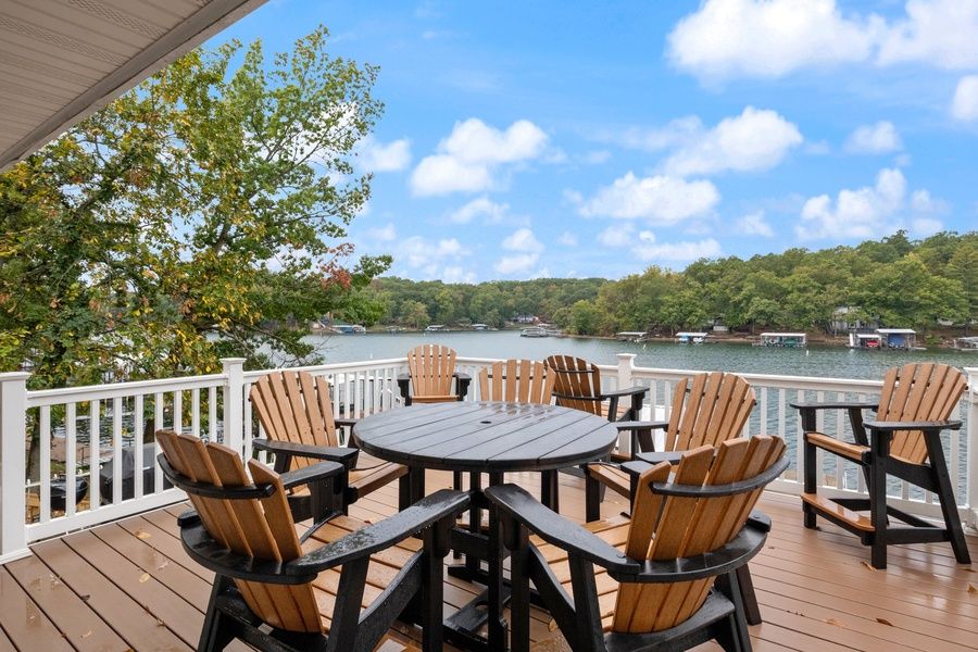 Lake Life has everything you need for an epic lake vacation! With six bedrooms on the entry level and all the dining, living and fun at the deck level; your crew has plenty of space to play, snooze and sun. The two levels of decks provide outside dining, fire pit enjoyment and grilling areas. Just one flight of stairs to the dock with a great swim area, wet step ladder and amazing fishing. Lake Life's stocked kitchen, game area, amenities and views create a perfect staycation and home away from home!