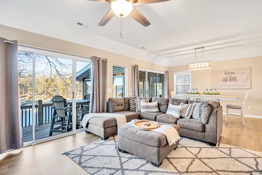 NEW! Living the Dream at Hickory Cove is everything the name suggests! Step into an incredible lakefront property designed to provide the best possible vacation for you and your guests. From the detailed interior design, themed rooms, and well equipped kitchen you'll be impressed before setting eyes on the amazing main channel views that will take your breath away. Venture to the deck for outdoor dining and perfect places to sit and sip your favorite coffee or cocktail. The lakefront dock offers lake enjoyment with two boat slips, easy access wet steps, and a high dive - all complimented by deep water year round.