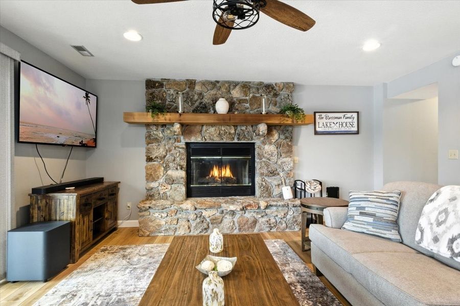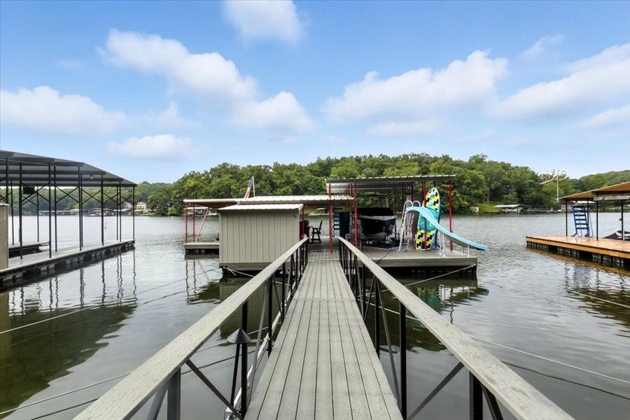 Welcome to Barberton Bay Retreat, a beautiful lakefront home in Sunrise Beach at the 10MM of Lake of the Ozarks, offering everything you need for a great lake vacation! A private dock, multiple balconies with lake views, and endless family-friendly amenities. From kayaking to lounging on the dock or enjoying evenings around the firepit, this home is your base for lakeside fun. Enjoy boating, grilling, or relaxing indoors, Barberton Bay Retreat has everything to keep your crew entertained! Great Space and Accommodations for Sleep, Dining, Gathering, and Enjoyment: • 3 bedrooms, 3 bathrooms + queen air mattress (sleeps 9) • Private dock with swim platform, slide, ladder, floaties, and paddle board • Lakeview living room with surround sound bar and smart TVs • Multiple balconies with outdoor seating and firepit • Kids' picnic table, toys, dishes, and baby gear (gate, pack n play) • Family-friendly games and video games for all ages • Fully equipped kitchen and indoor dining area • Excellent parking area and paved road - great for motorcycles + garage! Outdoor Fun for All Ages Enjoy lakeside living at its best with Barberton Bay Retreat's private dock—perfect for jumping off the swim platform, lounging on a lily pad, or paddling out in one of the two kayaks or paddle board. Kids will love the slide and dock seating, while adults can gather around the firepit or relax on the multiple balconies. Grill out on the propane BBQ and take in the stunning views with your favorite crew. Indoor Comforts and Entertainment Inside, the space is just as inviting. Gather in the lakeview living room with surround sound, or dive into family game night with video games, classic board games, and kid-friendly activities. With smart TVs throughout, a fully stocked kitchen, baby essentials, and a comfy recliner, everyone—from toddlers to adults—has a place to relax and recharge after a day on the lake. Local Attractions and Things to Do Nearby Located at the 10MM in Sunrise Beach, Barberton Bay Retreat offers excellent access to lakefront dining, boating, and entertainment. Head across the water to popular spots like Franky and Louie's or Captain Ron's, or explore the quieter coves by kayak or paddleboard. Enjoy live music, local marinas, and waterfront bars nearby. Off the water, check out shopping at the Osage Beach Outlet Marketplace, golfing at Bear Creek Valley, or family fun at Big Surf Waterpark. Other Things to Note: • We supply propane for the grill • Wood is not provided for the firepit • This property does not permit loud parties such as bachelor and bachelorette parties. Gatherings that are responsible and respectful are permitted. • This property does not allow smoking indoors or outdoors on the premises. • This property is easily accessible by road and does not require 4WD. All roads are paved; however, in winter, they may ice over and become difficult to navigate.. For Your Safety and Peace of Mind: • A video/audio doorbell at the entry for secure access • Decibel measuring devices are installed both indoors and outdoors to maintain noise control standards • Smart lock systems for timed guest access, ensuring your safety and convenience • An interior communication panel for Z Wave connection with locks and video doorbell, without video/audio monitoring inside • Unmonitored cameras are present surrounding the exterior for liability purposes, including the front of the house, balcony facing the dock, dock facing the house, and dock facing the boat/waverunners About Your Host: LakeDays Rentals - Casago is dedicated to offering intentionally crafted lake experiences at Lake of the Ozarks. In partnership with owners who are equally committed to providing amazing vacation stays, our team prioritizes your experience, from pre-arrival inspections to personalized services. With a deep love for the lake and an insider's perspective on its hidden gems, we're here to ensure your lake vacation creates lasting memories. We're honored to serve as your hosts for an exceptional lakeside adventure. Getting There: We highly recommend having a vehicle for your stay. Rideshare companies like LakeRide Pros are available, however, we recommend that you book well in advance. You will have ease of access via state highways and blacktop roads. This property is located approximately 3 hours from St. Louis and Kansas City, and a half-day drive from Nebraska, Illinois, Iowa, Kansas, and Arkansas, creating great access for families and friends to connect and gather! The International airport is in Kansas City, and regional airports are available in St. Louis, Columbia, and Springfield. Location Activities: Amazing activities are available throughout the lake area all year long. The Visitor Convention Bureau and your host offer event information for the time of your stay. For more information on area activities and events, check out the FunLake website offered by our local Visitors and Convention Bureau. Casago - Lake of the Ozarks has engaged VacayHome to ensure this listing contains all the information you need and that it is easy for you to book via search engines & online channels. VacayHome is connected directly to the property management system used by Casago - Lake of the Ozarks which ensures that availability & rates are up-to-date & accurate. When you book, VacayHome processes payment on behalf of Casago - Lake of the Ozarks and a charge will appear on your statement as "VacayHome". VacayHome will send you a confirmation e-mail that contains all the information you need to prepare for your vacation including arrival instructions. VacayHome has a 24 x 7 team to assist you with any questions or concerns you may have prior to arrival. To access VacayHome, obtain the customer support telephone number or read FAQs, please click on the links at the bottom of this page.