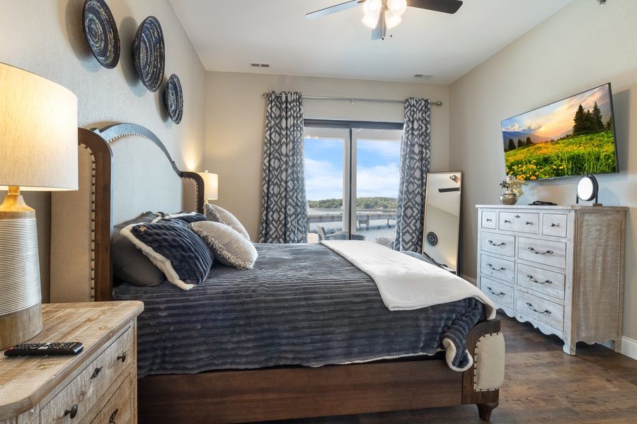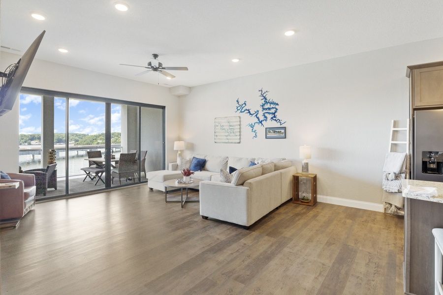 Amazing top floor condo in the highly sought after Topsider Condo Community. With three luxurious en suite bedrooms, each offering privacy and comfort, this retreat is perfect for families or groups. Relax on your private balcony with stunning lake views, or enjoy the spacious, modern living area and fully equipped kitchen. Dip into one of the lakefront pools, settle into the firepits, take advantage of boat docks, and explore nearby dining and attractions. Your ultimate lakeside escape awaits!