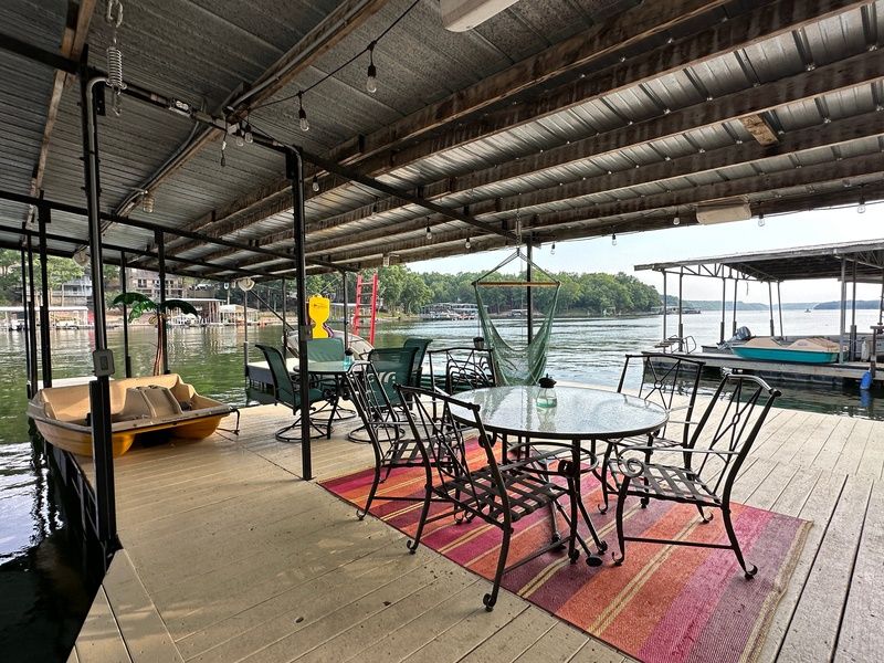 We absolutely adore this location - the cove, the neighbors, and the close proximity to Bear Bottom Resort. The Saturday night fireworks at 9:45 are a fantastic treat with a perfect view! Cherish the home for its stunning sunset views and abundant hidden storage. Live bands from Bear Bottom Resort entertains on Friday and Saturday nights, and relish the great fishing around the dock, beautiful sunsets, friendly neighbors, and easy access to various restaurants. Pure bliss!