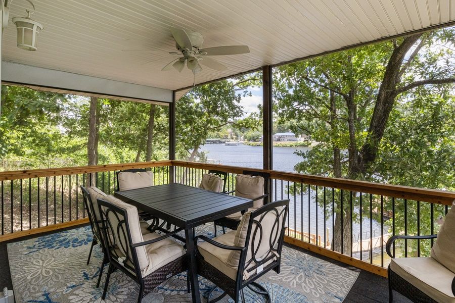 Sunrise Shores is a perfect lakeside retreat with spacious yet cozy bedrooms for up to 12 guests. Entertainment options include lower level bunk room for video gaming and a recreational space with a game table. The main level living area boasts lofted ceilings and beautiful lake views, along with a spacious screened porch for outdoor enjoyment. Guests can also gather around the fire pit for cozy evenings or take advantage of the boat slip for aquatic adventures. The location toward the back of the cove offers privacy and tranquility, while still being conveniently close to attractions like Bagnell Dam, public golf course, restaurants, and shopping. With updated interiors, a spacious dock, and ample parking, Sunrise Shores provides the perfect blend of comfort and convenience for a memorable lakeside getaway. Great space and accommodations for sleep, dining, gathering and enjoyment. • 4 Spacious Bedrooms For Convenience and Comfort • Firepit Table With Chairs At The Lower Deck By The Lake • Upper and Lower Deck w/ Seating and Lake View • Dining Indoors and Outdoors • 2 Refrigerators Available • Gas Grill On The Lower Deck • Dock Seating - Loungers and Adirondack Chairs • Dock is in a deep-water cove • Beach Essentials Such As Kayak, Swim Mat and Floaties • Swim Platform w/ Swim Ladder • Boat Slip 12 x 28 • Single Well Dock Slip with V-hull Lift • PWC Slip 12 x 10 • Corn Hole Game Set and Other Board Games Available • Propane Firepit Table on Lower Deck and Firepit on Yard • Pet - Friendly Home • Dog Crate (Medium up to 25lb - 26"L x 20"W x 21"H) and Bowls and Mat • Very Close To Public Golf Pet Friendly Property Guidelines - Pet fee of USD20 per night per pet is required. This will be added with the booking or shortly after depending on where you are booking through. - Pets must be on leash when outside and pets cannot be left unattended outside - Pets must be crated / kenneled when left in the home alone - Pet waste must be picked up and disposed of - Owner shall provide and utilize a “cover” (i.e. blanket / quilt) should the pet get onto furniture - Excessive hair on furniture or bedding and / or not managing pet waste can result in additional fines Exclusive to your LakeDays.Rentals stay: - Pack Less ProgramTM offering full stock service in paper products, toiletries, spices and oils, coffee amenities and more. - LakeDays by DesignTM offering personalized recommendations for your group based on interests, ages and budget. Secure systems for guest and neighborhood safety: - Video / Audio doorbell at entry. - Decibel measuring devices inside and outside for noise control standards. - Smart lock systems for timed guest access. - Interior communication panel for Z Wave connection with locks and video doorbell - no video / audio on interior communication panel. About Your Host LakeDays.Rentals offers intentionally designed lake experiences at Lake of the Ozarks. We partner with owners committed to providing amazing lake vacation stays of all shapes and sizes. Our team focuses on the guest experience from pre-arrival inspections to personalized recommendations. Their love for the lake is complimented by their experience as "locals" with a unique eye to some of the hidden attractions. We know your experience at Lake of the Ozarks will create memories to last a lifetime. We would be honored to host you and your guests! Getting There Ease of access via state highways and blacktop roads. Just 3 hours from St. Louis and Kansas City and a half day drive from Nebraska, Illinois, Iowa, Kansas and Arkansas you have great access for families to connect and gather. International airport is in Kansas City and regional airports are available in Columbia and Springfield. Location Activities Amazing activities are available throughout the lake area all year long. The Visitor Convention Bureau and your host offer event information for the time of your stay. For more information on area activities and events, check out the FunLake site offered by or local Visitors and Convention Bureau. Casago - Lake of the Ozarks has engaged VacayHome to ensure this listing contains all the information you need and that it is easy for you to book via search engines & online channels. VacayHome is connected directly to the property management system used by Casago - Lake of the Ozarks which ensures that availability & rates are up-to-date & accurate. When you book, VacayHome processes payment on behalf of Casago - Lake of the Ozarks and a charge will appear on your statement as "VacayHome". VacayHome will send you a confirmation e-mail that contains all the information you need to prepare for your vacation including arrival instructions. VacayHome has a 24 x 7 team to assist you with any questions or concerns you may have prior to arrival. To access VacayHome, obtain the customer support telephone number or read FAQs, please click on the links at the bottom of this page.