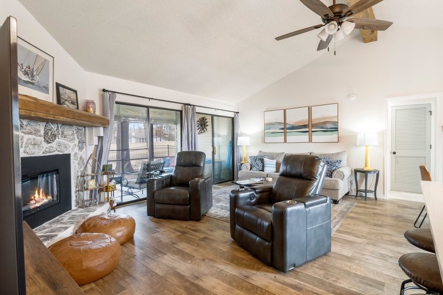 Escape into a lake home of relaxation and comfort nestled in a serene setting. Enjoy a fenced yard overlooking the tranquil greens of a golf course, with a hot tub and firepit to relax in the evening. Step onto the front porch, take a seat and soak in the breathtaking lake views, or indulge in ultimate relaxation in the screened-in back porch. Indoors, the ambiance is equally inviting with a beautiful kitchen, spacious seating, and electric fireplace for intimate gatherings.