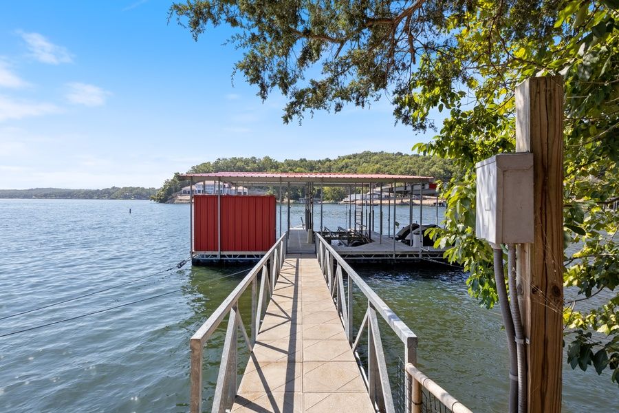 - Private dock with a Swim Platform, Swim Mat, Swim Ladder, and available boat slip and side tie off.