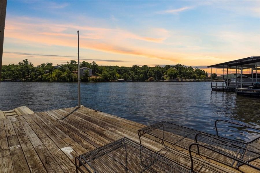 Step inside a space where the world feels like it paused for just a moment and breathe in the lake views from all around in a traditional, A-Frame setting home on the 5mm in Rocky Mount at Lake of the Ozarks. This pet-friendly property features a private dock with a kayak, swim mat, and PWC slip, plus outdoor seating with beautiful lake views. Indoors, enjoy several TVs, games, movies, and a pack 'n play - it's the perfect, relaxing getaway to make your family's lake memories! Great Space and Accommodations for Sleep, Dining, Gathering, and Enjoyment: • 2 bedrooms and 2 full bathrooms • Full-size sleeper sofa in the living room • Smart TVs throughout with cable service • Fully equipped kitchen with Keurig and seating for 4 • Indoor electric fireplace for cozy evenings • Games, movies, and Pack 'n Play for family use • Lake views from multiple indoor spaces • Outdoor seating area, partially covered, overlooking the lake • Propane grill for outdoor cooking • Private dock with swim platform, swim ladder, kayak, swim mat, noodles, and a PWC slip Lakeside Fun and Dockside Views Outdoors, enjoy a private dock equipped for adventure—complete with a swim platform, ladder, kayak, PWC slip, swim mat, and pool noodles. Lounge or dine under the open sky or in the shaded patio area with comfortable seating and lakefront views. Grill up a meal on the propane grill and settle into your lake rhythm on the peaceful waters of Rocky Mount’s 5 MM. Cozy Comfort Indoors Inside, you’ll find 2 bedrooms, 2 bathrooms, and an open-concept living and dining area with plenty of windows for lake viewing. The fully stocked kitchen includes a Keurig coffee maker and everything needed for mealtime. Unwind with games, movies, and cable TV, or relax by the electric fireplace. With a full sleeper sofa and Pack 'n Play, the space easily accommodates up to 6 guests. Explore Nearby – MM 5 and Rocky Mount Attractions Located just off the 5 Mile Marker, this home offers easy access to lakefront favorites. Boat over to Jolly Rogers Grub and Grog for live music and burgers, or Shady Gators and H Toad’s for nightlife. Just a short drive away, you’ll find golf courses, trails, and the Bagnell Dam Strip for shopping, arcades, and fun events. This quiet side of the lake offers a relaxing vibe with access to great entertainment just minutes away. Other Things to Note: • We supply propane for the grill • Electric fireplace is for ambiance and heat, no real flame • This property is accessed through a mix of paved and gravel roads. Drivers may encounter steep hills and narrow roadways. Please use caution while navigating. In winter, roads may ice over and become difficult to navigate. • The minimum age to book this property is 25 years old, and it is best suited for families and groups of friends. • This property does not allow loud parties. Gatherings that are responsible and respectful are permitted. For Your Safety and Peace of Mind: • A video/audio doorbell at the entry for secure access • Decibel measuring devices are installed both indoors and outdoors to maintain noise control standards • Smart lock systems for timed guest access, ensuring your safety and convenience • An interior communication panel for Z Wave connection with locks and video doorbell, without video/audio monitoring inside Pet-Friendly Property Guidelines • A maximum of 1 large pet, or 2 small pets is allowed. • A Pet fee of USD20 per night per pet is required. This will be added with the booking or shortly after depending on where you are booking through. • Pets must be on a leash when outside and pets cannot be left unattended outside • Pets must be crated/kenneled when left in the home alone • Pet waste must be picked up and disposed of • Owner shall provide and utilize a “cover” (i.e. blanket/quilt) should the pet get onto furniture • Excessive hair on furniture or bedding and/or not managing pet waste can result in additional fines About Your Host: LakeDays Rentals - Casago is dedicated to offering intentionally crafted lake experiences at Lake of the Ozarks. In partnership with owners who are equally committed to providing amazing vacation stays, our team prioritizes your experience, from pre-arrival inspections to personalized services. With a deep love for the lake and an insider’s perspective on its hidden gems, we’re here to ensure your lake vacation creates lasting memories. We’re honored to serve as your hosts for an exceptional lakeside adventure. Getting There: We highly recommend having a vehicle for your stay. Rideshare companies like LakeRide Pros are available, however, we recommend that you book well in advance. You will have ease of access via state highways and blacktop roads. This property is located approximately 3 hours from St. Louis and Kansas City, and a half-day drive from Nebraska, Illinois, Iowa, Kansas, and Arkansas, creating great access for families and friends to connect and gather! Casago - Lake of the Ozarks has engaged VacayHome to ensure this listing contains all the information you need and that it is easy for you to book via search engines & online channels. VacayHome is connected directly to the property management system used by Casago - Lake of the Ozarks which ensures that availability & rates are up-to-date & accurate. When you book, VacayHome processes payment on behalf of Casago - Lake of the Ozarks and a charge will appear on your statement as "VacayHome". VacayHome will send you a confirmation e-mail that contains all the information you need to prepare for your vacation including arrival instructions. VacayHome has a 24 x 7 team to assist you with any questions or concerns you may have prior to arrival. To access VacayHome, obtain the customer support telephone number or read FAQs, please click on the links at the bottom of this page.