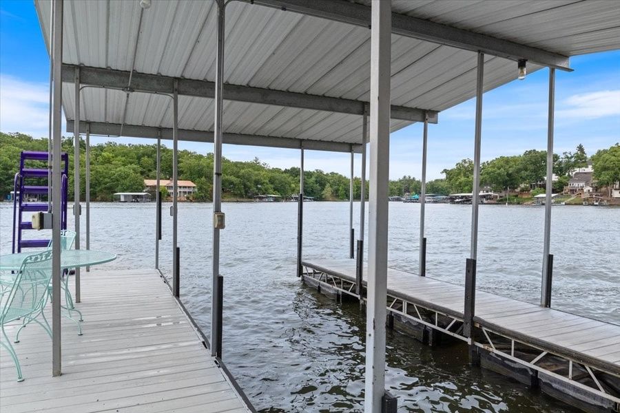 Welcome to Hawk's Landing, a cozy lakefront home at the 10MM in Sunrise Beach. You'll enjoy a private dock with a swim platform and boat slip, a hot tub, an expansive lakeside deck with a flat top grill and ample seating, and lower deck with beautiful views of the lake while sitting by the firepit. The electric fireplace and pullout couch provide added comfort and additional sleeps. Hawk's Landing is an ideal location for fishing getaways and peaceful family lake vacations. Book your stay today! Great Space and Accommodations for Sleep, Dining, Gathering, and Enjoyment: • 2 bedrooms and 1 full bathroom + Additional sleep space on pullout couch • Expansive deck with lakefront views, a flat top grill, seating for 10, and a hot tub for relaxing nights • Additional lower-level deck with lounge seating for fun in the sun, plus a firepit! • Private dock with swim platform, ladder, floaties, and boat slip • Easy access to boat ramp at Lakeshore Marina, just 5 min away. (USD5 to put in 5USDto pull out, and USD10 trailer storage). Outdoor Enjoyment at Its Best Enjoy incredible outdoor living at Hawk's Landing. Relax in the hot tub overlooking the main channel, or gather around the firepit on the lower deck for evenings by the lake. The private dock features a swim platform, ladder, and floaties, perfect for swimming or launching your boat from the available slip. The flat top propane grill makes outdoor dining simple, and both decks provide stunning lake views all day. Indoor Luxury and Entertainment Inside, Hawk's Landing offers cozy comfort for your lakeside escape. The open living area includes an electric fireplace, dining space, and pullout couch for extra guests. Two bedrooms provide restful accommodations, while the full kitchen has everything needed for meals at home. Ideal for small families or avid fishers looking to relax after a day on the water. Local Attractions and Activities Located at the 10MM in Sunrise Beach, Hawk's Landing offers quick access to some of the Lake's best attractions. You're close to Captain Ron's, Paradise, and The Cave by road, or Frankie and Louie's, Alhonna, and Camden on the Lake for lakeside dining and entertainment. Drive to Laurie for groceries, shopping, and local restaurants. Fish from the dock, take your boat out to the lake bars, or enjoy seasonal events, golf courses, and the famous Bagnell Dam Strip just a short drive away. Other Things to Note: • We supply propane for the flat top grill • Wood is not provided for the fire pit • Gatherings that are responsible and respectful are permitted. • This property is accessed through a mix of paved and gravel roads. Drivers may encounter steep and narrow roadways. Please use caution while navigating. In winter, roads may ice over and become difficult to navigate. • The minimum age to book this property is 25 years old and it is best suited for families and groups of friends. Pet-Friendly Property Guidelines Pet fee of USD20 per night per pet is required. This will be added with the booking or shortly after depending on where you are booking through. Pets must be on a leash when outside and pets cannot be left unattended outside Pets must be crated/kenneled when left in the home alone Pet waste must be picked up and disposed of Owner shall provide and utilize a “cover” (i.e. blanket/quilt) should the pet get onto furniture Excessive hair on furniture or bedding and/or not managing pet waste can result in additional fines For Your Safety and Peace of Mind: • A video/audio doorbell at the entry for secure access • Decibel measuring devices are installed both indoors and outdoors to maintain noise control standards • Smart lock systems for timed guest access, ensuring your safety and convenience • An interior communication panel for Z Wave connection with locks and video doorbell, without video/audio monitoring inside About Your Host: LakeDays Rentals - Casago is dedicated to offering intentionally crafted lake experiences at Lake of the Ozarks. In partnership with owners who are equally committed to providing amazing vacation stays, our team prioritizes your experience, from pre-arrival inspections to personalized services. With a deep love for the lake and an insider's perspective on its hidden gems, we're here to ensure your lake vacation creates lasting memories. We're honored to serve as your hosts for an exceptional lakeside adventure. Getting There: We highly recommend having a vehicle for your stay. Rideshare companies like LakeRide Pros are available, however, we recommend that you book well in advance. You will have ease of access via state highways and blacktop roads. Casago - Lake of the Ozarks has engaged VacayHome to ensure this listing contains all the information you need and that it is easy for you to book via search engines & online channels. VacayHome is connected directly to the property management system used by Casago - Lake of the Ozarks which ensures that availability & rates are up-to-date & accurate. When you book, VacayHome processes payment on behalf of Casago - Lake of the Ozarks and a charge will appear on your statement as "VacayHome". VacayHome will send you a confirmation e-mail that contains all the information you need to prepare for your vacation including arrival instructions. VacayHome has a 24 x 7 team to assist you with any questions or concerns you may have prior to arrival. To access VacayHome, obtain the customer support telephone number or read FAQs, please click on the links at the bottom of this page.