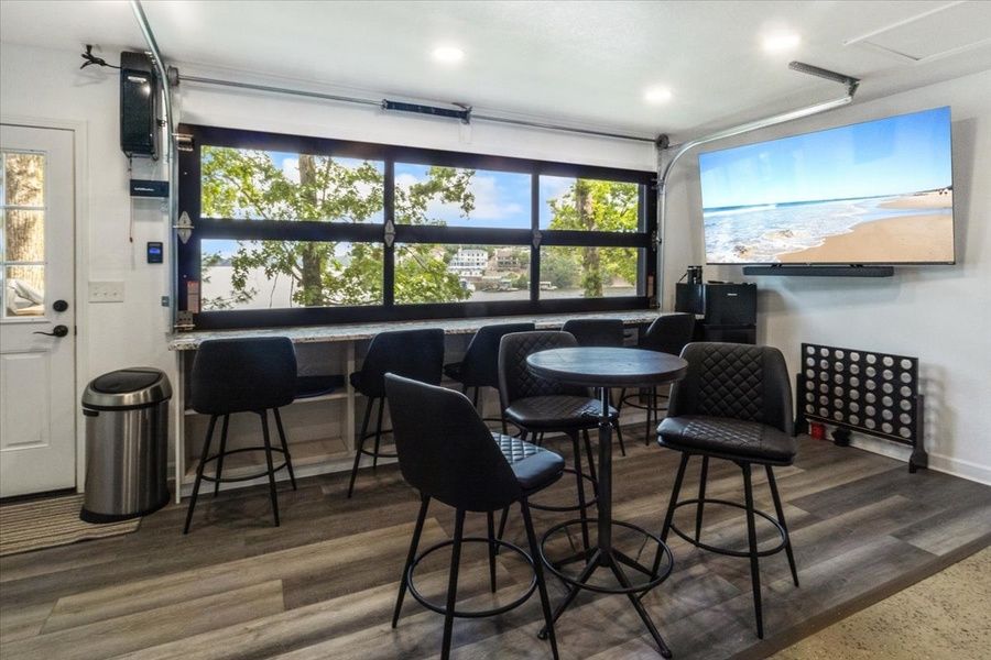 • New Game Room featuring Tornado Foosball Table, Large Jenga, Chess/Checkers, 12' Shuffleboard table, Large Connect-Four, Nerf/Badminton, Jazzminton, Karaoke Machine, 75" Smart TV w/ Roki, and, Arcade System with thousands of games from Atari, Nintendo, Super Nintendo, Game Boy, Sega Genesis, and more! Also includes a beverage fridge, seating for 12 total with 5 barstools at the roll-up window, 3 at a pub table, and 2 loveseats that are pull-out sleepers.