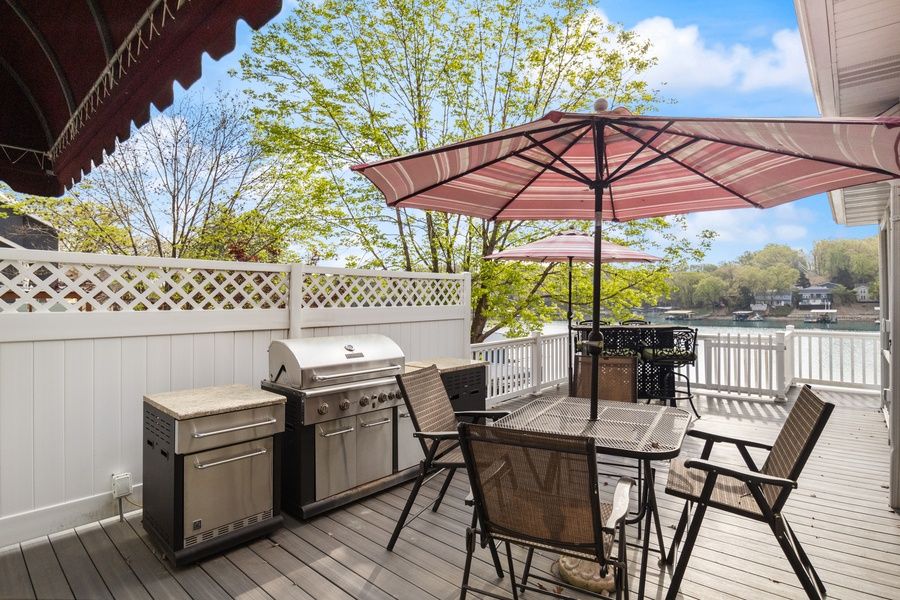 Step inside to be greeted by a wall of windows, flooding the space with natural light and showcasing the beauty of the surroundings. The highlight of our home is undoubtedly the expansive dock, complete with a lounge area, picnic table, and solid surface countertop. Whether you're soaking up the sun on the uncovered portion or seeking shade under the partial covering, the dock provides the perfect spot to kick back and enjoy the lake breeze.