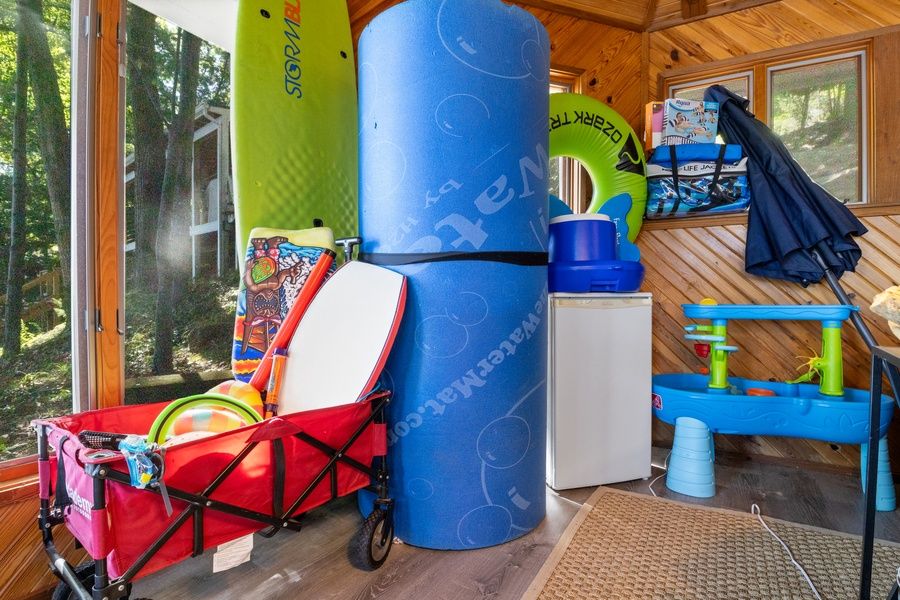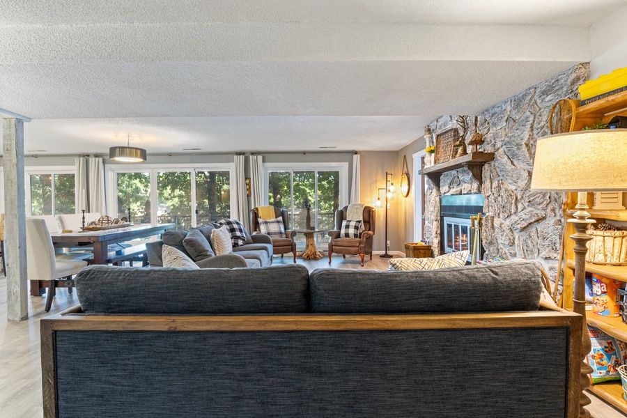 Families will love our child-friendly amenities, and lake enthusiasts will appreciate the availability of lots of lake gears available: Swim Mat, Swim Ladder, Life Jackets, Floaties, Fishing Poles and Tackle, Water Table, Kids Paddle Board, 3 Kayaks, Kids Kayak, Floating Cooler, and Regular Wheeled Cooler. Relax on our two porches overlooking the lake, enjoy afternoons in the shaded decks, or unwind in the sunroom. The firepit area and charming decor create a true lake house ambiance, making it the perfect retreat for your getaway.