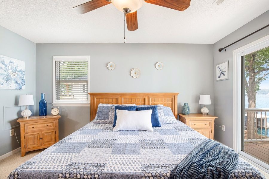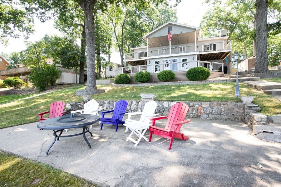 - Lower wrap around deck with shaded lake views, grill, and outdoor dining areas