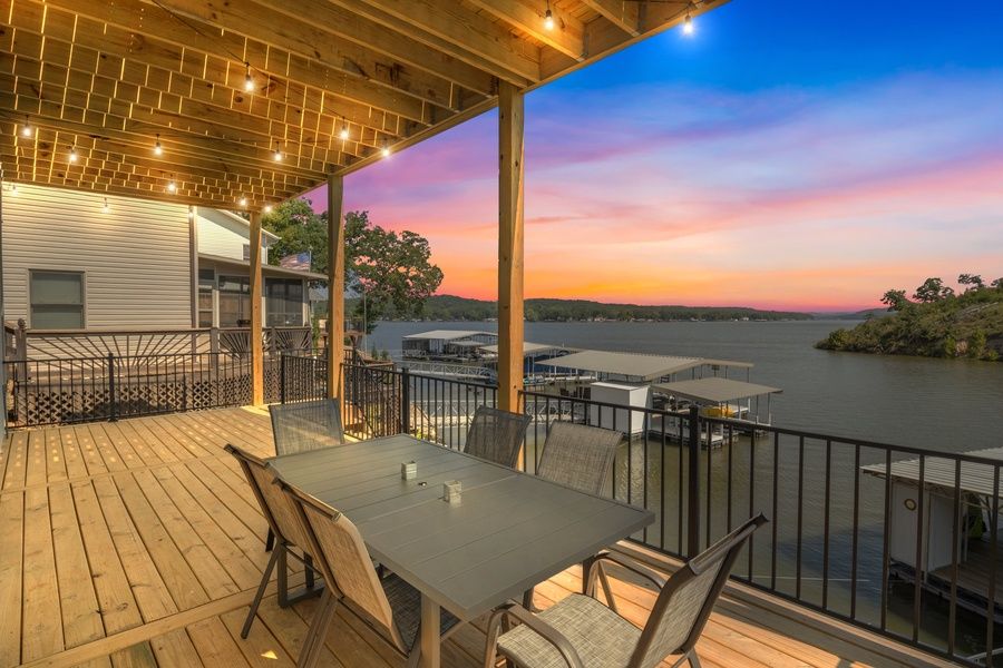 Step outside onto the expansive deck, which is perfect for dining al fresco, grilling, or simply taking in the sunset. With comfortable seating and a dining table, this outdoor space is perfect for morning coffee or evening cocktails as you soak in the beauty of the lake.