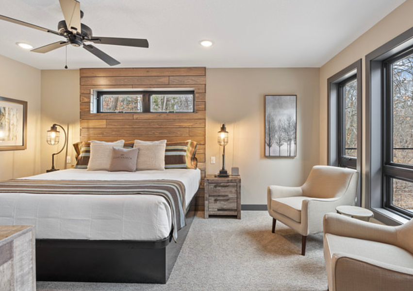 The 3-bedroom Woodsmoke Cabin sleeps up to 8 people. The main level features a full kitchen plus dining area for nights when you want to stay tucked in the woods and cook delicious meals. Enjoy together time with family and friends in the great room with a gas fireplace. Continuing on the main level is a master bedroom with a king bed, two cozy oversized chairs, and an en-suite bathroom with a stand-up tile shower. The second bedroom also has a king bed and an en-suite bathroom with a stand-up tile shower. The basement features a third oversized bedroom, including two king beds and a bathroom with a bathtub and shower. There is another spacious family room to spread out and a game room with a pool table for days and nights of fun. Finish your day at your outdoor wood-burning firepit relaxing among the trees. This unit does not have a lake view, but is within walking distance to the lake.