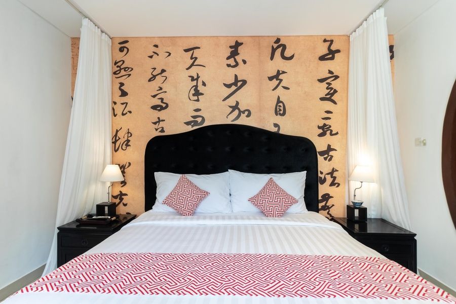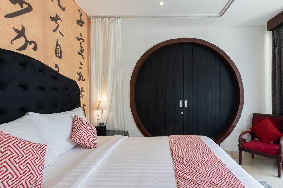 Enter the world of Chinese elegance in Oaini, where traditional design elements blend seamlessly with modern comforts. This exquisite 1-bedroom villa offers a luxurious retreat, featuring a sumptuous bathtub in the room.