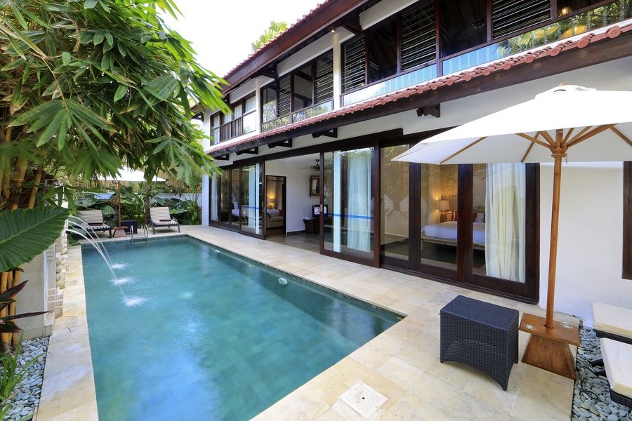 Step into the traditional Balinese charm of Cinta, a 3-bedroom villa that embodies the serene beauty of Bali. This villa is designed with intricate wooden carvings and cultural artifacts, offering an authentic Balinese experience.
