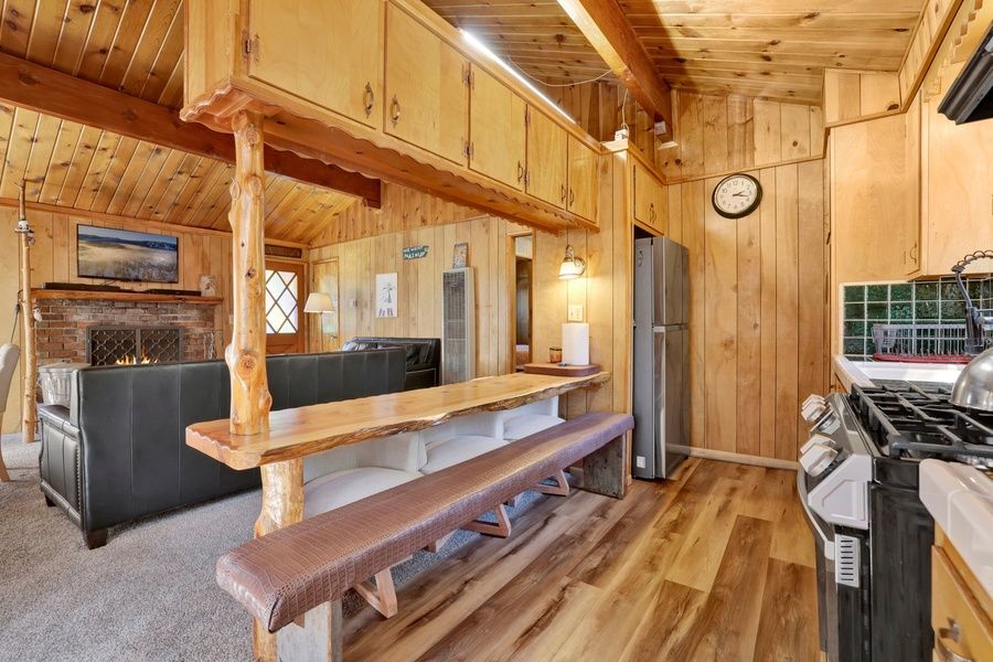 With four spacious bedrooms and two full bathrooms, there's plenty of room to unwind and recharge. Two wood-burning fireplaces add a warm, rustic touch for those crisp mountain nights.