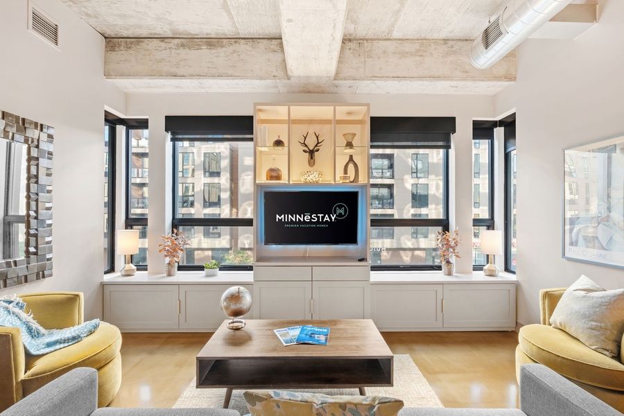 Downtown living at its best! Experience the vibrant heart of Minneapolis in this modern 2-bedroom, 2-bath apartment located in the sought-after North Loop — perfect for a weekend getaway or extended city stay. -- Highlights -- • Spacious kitchen and open living area with a mini bar • 2 bedrooms, 2 full bathrooms • In-unit washer + dryer • 1 FREE parking space • Access to rooftop terrace, BBQ area, and stylish lobby • Prime North Loop address — just a 10-minute walk to Target Field • Walk to fantastic restaurants, boutique shops, and the Target Center • Easy access to highways and public transit *Note: This is a handicap-accessible unit, featuring a zero-depth shower in the primary bathroom and wider doorways and hallways for easy accessibility. -- Bed -- Comfortably sleeps up to 6 guests: • Bedroom 1: King bed with en-suite 3/4 bathroom • Bedroom 2: Queen bed, 3/4 bath just outside the door • Living Room: Pull-out couch (sleeps 2) -- Living Space -- The open-concept kitchen and living area feature bright windows and 12-foot ceilings for an airy, modern feel. While the North Loop offers endless dining options, you’ll love having a fully equipped kitchen stocked with everything you need — plus a mini bar, perfect for enjoying a cocktail before heading out. The granite peninsula doubles as extra prep space or a casual dining spot. Unwind in the cozy living room with a movie on the flat-screen TV, or simply relax and recharge after a day exploring the city. Book your stay today — Minnestay looks forward to hosting you! -- BUILDING AMENITIES -- Head up to the rooftop deck for panoramic views of the Minneapolis skyline, plenty of outdoor seating options, and BBQ stations where you can try your hand at grilling a Minnesotan classic, the Juicy Lucy. On the first floor, you’ll find a swanky Member’s Lounge with a custom shuffleboard table. -- ESSENTIALS -- One parking space in the covered parking ramp is included with your reservation. Even your car can stay nice and dry! -- LOCATION INFORMATION -- Welcome to the North Loop! This area is considered the hottest neighborhood in Minneapolis. The North Loop boasts a vibrant dining scene — here are a few nearby favorites: • Five Iron (next door) • Bunker’s Music Bar and Grill (2-minute walk) • The Freehouse (2-minute walk) • Cuzzy’s Bar and Grill (3-minute walk) In addition to the fun stuff, you can also find all the essentials for a comfortable stay within walking distance: • Closest supermarket: Whole Foods Market (13-minute walk) • Closest coffee shop: FRGMNT Coffee (Nordic Building) (2-minute walk) * Concierge Services Available * Looking for groceries, a chef-prepared meal, or even boat rentals? Our concierge service is here to take your vacation to the next level. Give us a call or send us a message to let us know how Minnestay can make your Five Star Stay unforgettable! You’ll only be a call or message away from our professional Minnestay team, who can provide recommendations or answer questions at any time. For nearly 10 years, we’ve been dedicated to delivering exceptional experiences in the Twin Cities area. ***Please Send us a Message if You're looking for a stay longer than 30 Days*** *HOUSE RULES* • All guests must be over the age of 25, unless part of a family unit. Verification may be required. • All check-ins are contactless! To provide this service, we require a photo of yourself holding your ID to verify your identity, to be emailed or texted to our reservations department prior to check-in. No exceptions. (Please be aware that we do not have staff available to meet guests in person on site for this purpose.) • Bookings made within 7 days of arrival will require additional documentation. • A Minnestay Rental Agreement must be signed prior to arrival. This will require that you provide us with your email address. Please inquire about the terms and conditions prior to booking. More info can be found on the Minnestay website, under Guest Services - Rental Policies. • This is a 100% smoke-free property (tobacco, cannabis, e-cigarettes, vape, etc). There is no smoking allowed on the balconies, rooftop patio, or within 25 feet of the building's entrances. Fees will be assessed for smoking in the building or unit. • No events! This home is designed for families and responsible adults. Restrictions include, but are not limited to: Weddings and wedding celebrations, Bachelorette/bachelor gatherings, and reunions. This “no events” policy includes the common areas of the building. • No pets are allowed at Sable. This includes both in the units as well as common areas of the building including the 9th Floor Rooftop deck and 1st Floor Member's Lounge. Certified Service Animals are welcome (does not include emotional support animals) and will need to be mentioned prior to booking. • Quiet hours: 10PM-7AM, strictly enforced. Noise violations could result in a minimum fee of $150 per violation. Minnestay has engaged VacayHome to ensure this listing contains all the information you need and that it is easy for you to book via search engines & online channels. VacayHome is connected directly to the property management system used by Minnestay which ensures that availability & rates are up-to-date & accurate. When you book, VacayHome processes payment on behalf of Minnestay and a charge will appear on your statement as "VacayHome". VacayHome will send you a confirmation e-mail that contains all the information you need to prepare for your vacation including arrival instructions. VacayHome has a 24 x 7 team to assist you with any questions or concerns you may have prior to arrival. To access VacayHome, obtain the customer support telephone number or read FAQs, please click on the links at the bottom of this page.