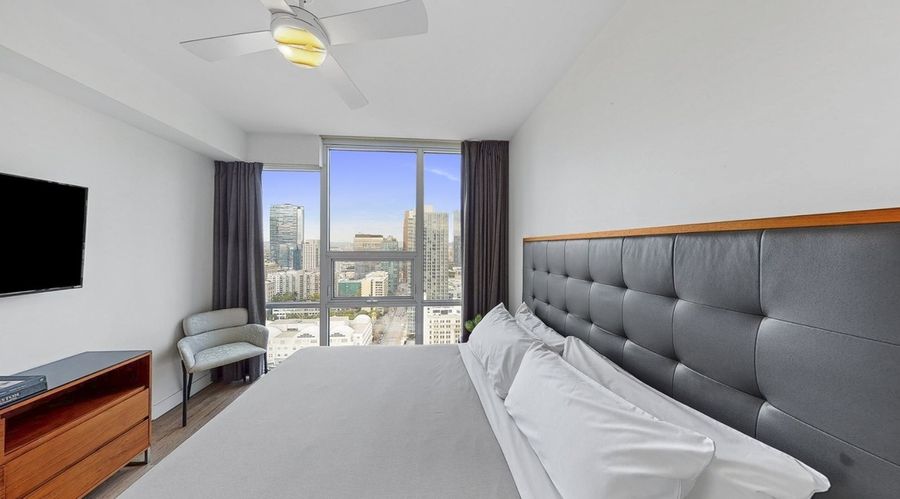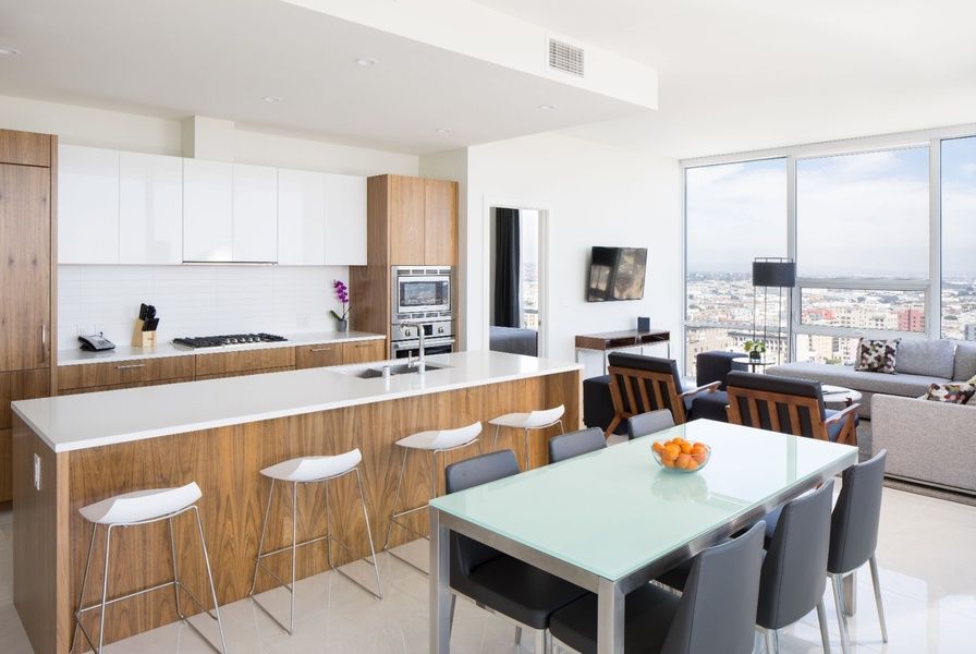 Welcome to vibrant DTLA. Home to celebrated chefs, a thriving arts & culture scene, iconic entertainment venues and, dare-we-say, some of the best sports in the country. Nestled amid the glittering towers and Art Deco facades, you’ll find Level South Olive. Steps to Grand Hope Park and just minutes from LA Live, Crypto.com Arena (formerly Staples Center), the Financial District, the Fashion District and more. Available for nightly and extended stays, Level South Olive offers spacious one, two and three-bedroom accommodations boasting fully-appointed kitchens, functional modern design. Flexible lease apartments for rent furnished with the conveniences of home and the luxury amenities of hotels and resorts makes the suite life at Level South Olive in downtown Los Angeles anything but ordinary. Featuring 24 hour Guest Services and access to over 37,000 sq ft of unparalleled lifestyle amenities including outdoor resort pool with cabanas, fully-equipped BBQs, entertaining and dining spaces, basketball courts, and more. Enjoy spacious Los Angeles accommodations with our One Bedroom Suites. Ranging from 710 – 870 sq ft, our suites boast fully-equipped kitchen, living room with sofa bed, spa-inspired bathroom, bedroom with king bed and an open-air balcony perfect for soaking up the California sun. Ideal for couples and corporate travelers alike, all suites also feature in-suite laundry, premium appliances, flat-screen TV with cable, complimentary WiFi and local calling. Space to live and play? That’s pretty suite. Nightly Self- Parking ($55 per night) & Valet Parking ($69 per night) Onni - Level Los Angeles - Downtown South Olive has engaged VacayHome to ensure this listing contains all the information you need and that it is easy for you to book via search engines & online channels. VacayHome is connected directly to the property management system used by Onni - Level Los Angeles - Downtown South Olive which ensures that availability & rates are up-to-date & accurate. When you book, VacayHome processes payment on behalf of Onni - Level Los Angeles - Downtown South Olive and a charge will appear on your statement as "VacayHome". VacayHome will send you a confirmation e-mail that contains all the information you need to prepare for your vacation including arrival instructions. VacayHome has a 24 x 7 team to assist you with any questions or concerns you may have prior to arrival. To access VacayHome, obtain the customer support telephone number or read FAQs, please click on the links at the bottom of this page.