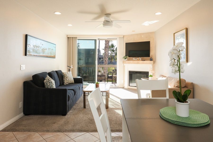 North Coast Village is located between the Oceanside Harbor and the Oceanside Pier, and is a favorite destination for both couples and families. The complex consists of nine 4-story buildings surrounded by 2-story cottages, on several acres of beautifully landscaped grounds. You are just steps from the sand; there are no roads to cross as this is an OCEANFRONT COMPLEX! Swim in the Olympic-sized heated pool (one of two pools and spas), or enjoy a romantic walk on one of the most beautiful stretches of beach in Southern California.