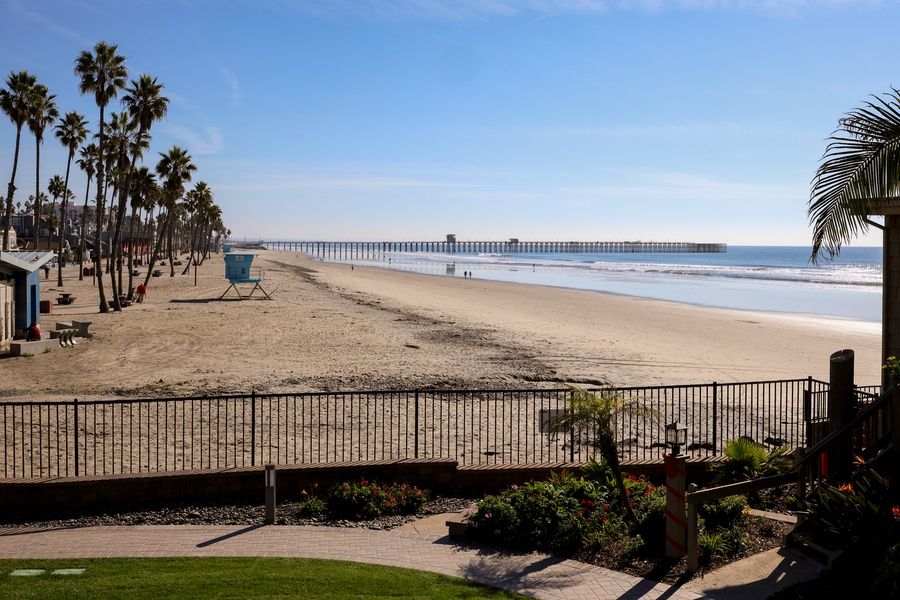 If you're looking for the finest in location AND interior at North Coast Village, Coastal Cottage is the one for you! Unobstructed, panoramic, whitewater ocean views are yours from the moment you walk into this gorgeously remodeled south-facing beach condo. This property has been completely remodeled and updated throughout, sparing no expense! You can see for miles - past the Oceanside Pier and all the way to La Jolla! This 2-bedroom unit is all on one floor. It is located on the second floor of the two-story cottage building, so there is no one above you. Picture yourself relaxing on your private balcony with a refreshing beverage as you enjoy watching the marine life and beach scene from this south-facing location.