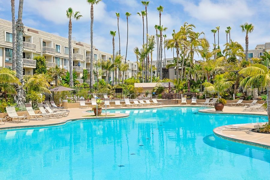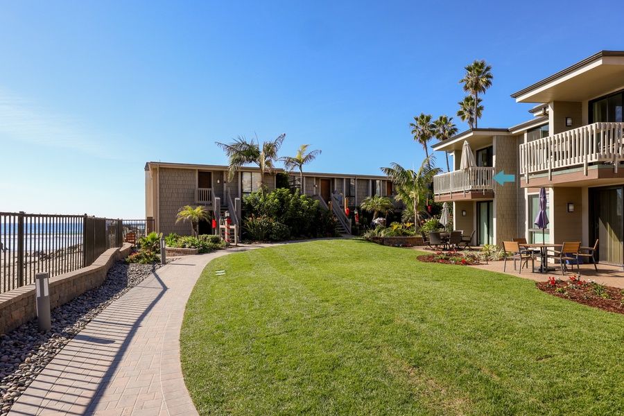 The complex consists of nine four-story buildings surrounded by two-story cottages, on several acres of lushly landscaped tropical grounds. Enjoy a romantic walk on one of the most beautiful stretches of beach in Southern California.