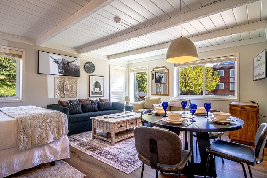 Why settle for a hotel room when you can enjoy a spacious newly updated Sun Valley studio condo with all the resort perks? Sun Valley Resort Rec Pass included! Atelier Escape is a sunny studio condo located across from the Sun Valley Lake and only a short stroll or bike ride to Sun Valley Resort Lodge, Village, and Pavilion.