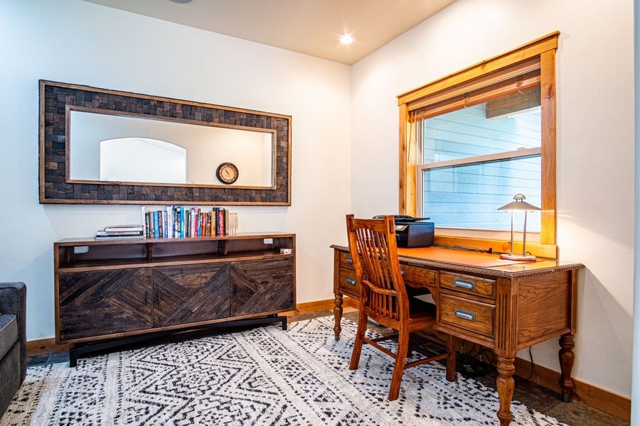 Cranbrook Cottage boasts 2,800 sq feet of living space with A/C, a fully fenced backyard with a furnished patio and hot tub, and a double garage – perfect for the snow season in Sun Valley. From the welcoming front porch, step inside to a spacious great room separated into a family room, office/den, dining area, gourmet kitchen, and large living room. Cranbrook's creature comforts include a fully-equipped kitchen with double ovens, three fireplaces, a 65” Smart TV, Sonos sound, a brand new pool table, and more!