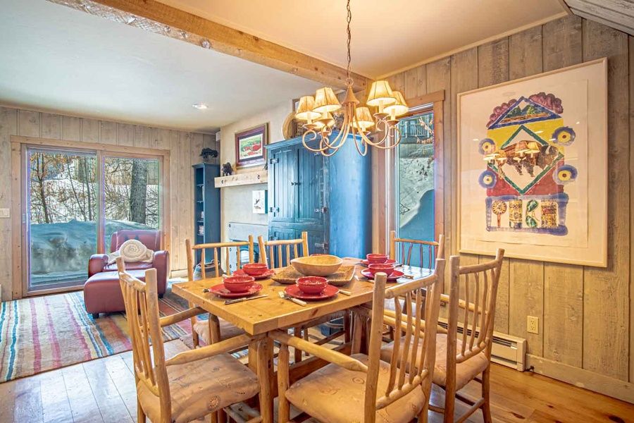 Inside, this colorful and cozy retreat is designed for comfort! Kick back by the wood burning fireplace in the living room, stream your favorite shows on the Smart TV, or step out onto the private creekside patio for a breath of fresh mountain air. The fully stocked kitchen and dining area for six make it easy to gather for meals when you're not exploring Ketchum's endless selection of restaurants.
