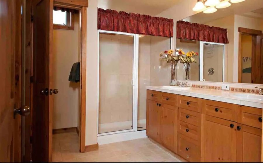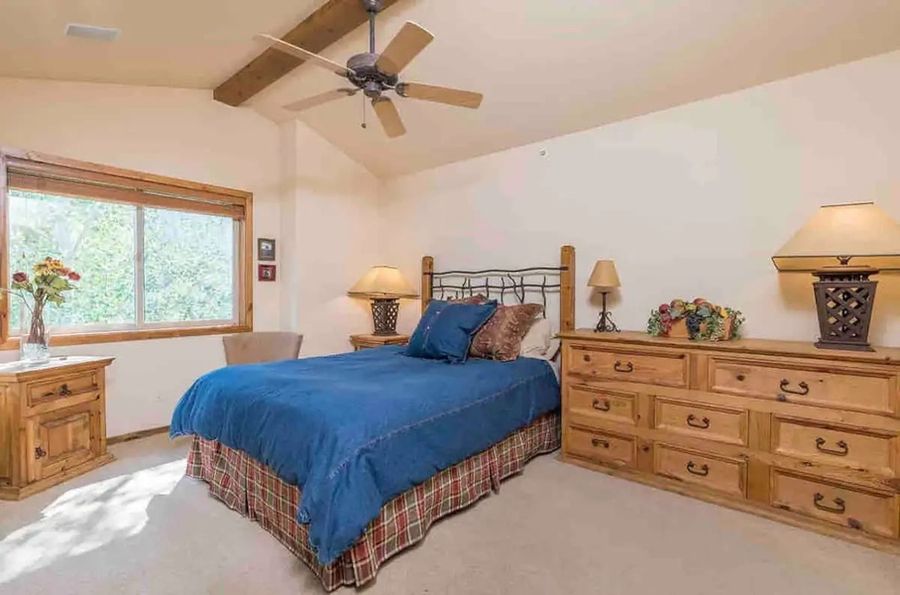 This Warm Springs vacation condo accommodates up to 8 guests in 3 spacious bedrooms. The master suite is private on the upper level of the condo with vaulted ceilings, a queen-size bed, and a private bathroom with a walk-in shower. On the main level is a cozy queen guest room and a bunk room for 4, sharing the guest bathroom.