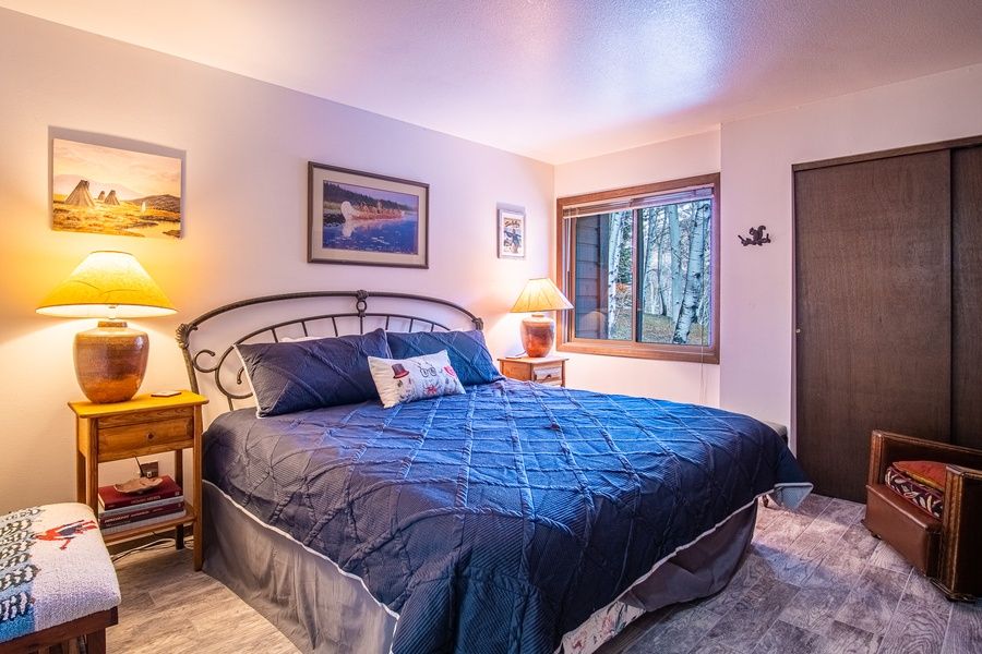 This Elkhorn condo is ideal for two couples or a small family vacation. The guest bedroom is to the right of the entry way with a queen bed and use of the guest bathroom with a walk in shower. The master suite features a queen bed and a private bathroom with a walk in shower.