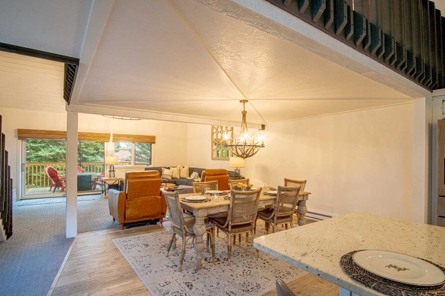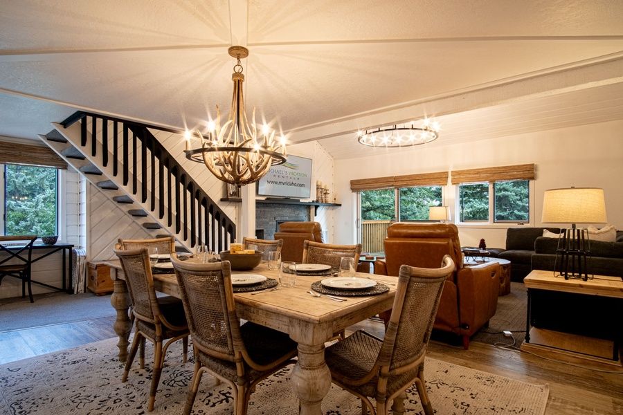 Sunburst 33 is spread over three levels ensuring an abundance of space and comfort for your stay. The open living area is the perfect gathering space! Sink into the sectional sofa for movie nights and fireside chats, gather around the table for meals and board games, or step out to the deck for cozy coffee mornings with a view! The kitchen is fully equipped for home-cooked meals, or venture out to explore 60+ restaurants in Sun Valley and downtown Ketchum.