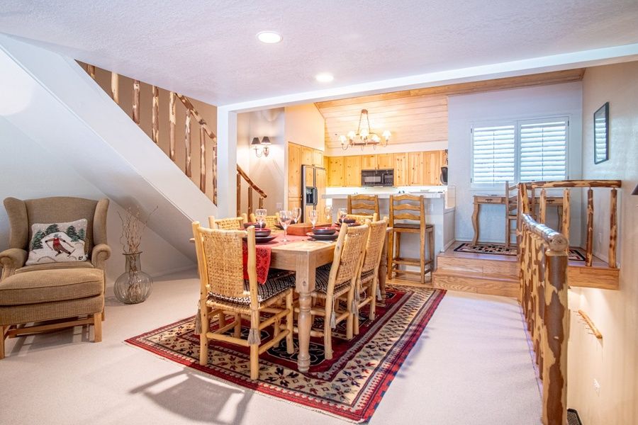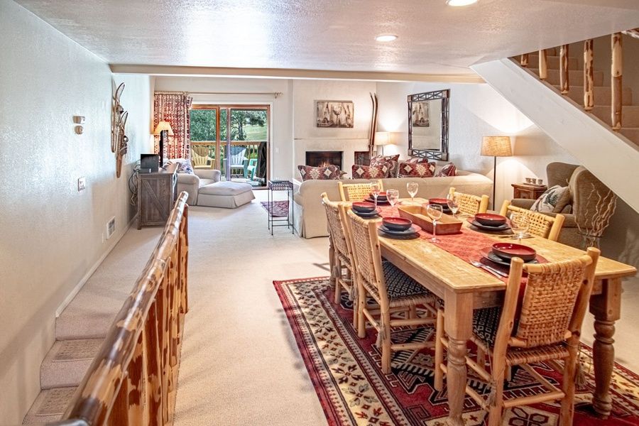 Sunburst 54 is spread over three levels ensuring an abundance of space and comfort for your stay. The open living area is the perfect gathering space! Sink into the sectional sofa for movie nights and fireside chats, gather around the table for meals and board games, or step out to the deck overlooking the Elkhorn Golf Course for a BBQ with a view! The kitchen is fully equipped for home-cooked meals, or venture out to explore 60+ restaurants in Sun Valley and downtown Ketchum.