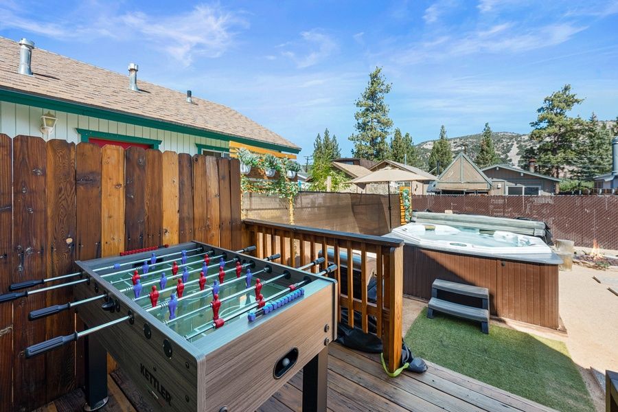This beautifully maintained Big Bear City cabin is the ideal escape for guests seeking classic mountain charm with modern upgrades. Located in a quiet neighborhood with easy access to dining, grocery stores, and local attractions, this cozy gambrel-style retreat features vaulted ceilings, rich wood accents, and a striking rock fireplace. After a day of exploring, unwind in the backyard hot tub, gather around the fire pit, or cool off inside with the rare luxury of air conditioning.