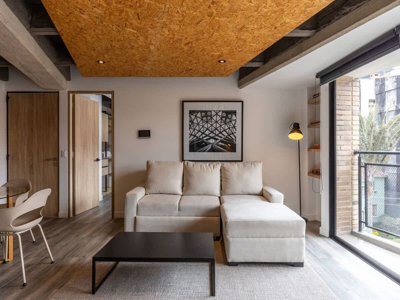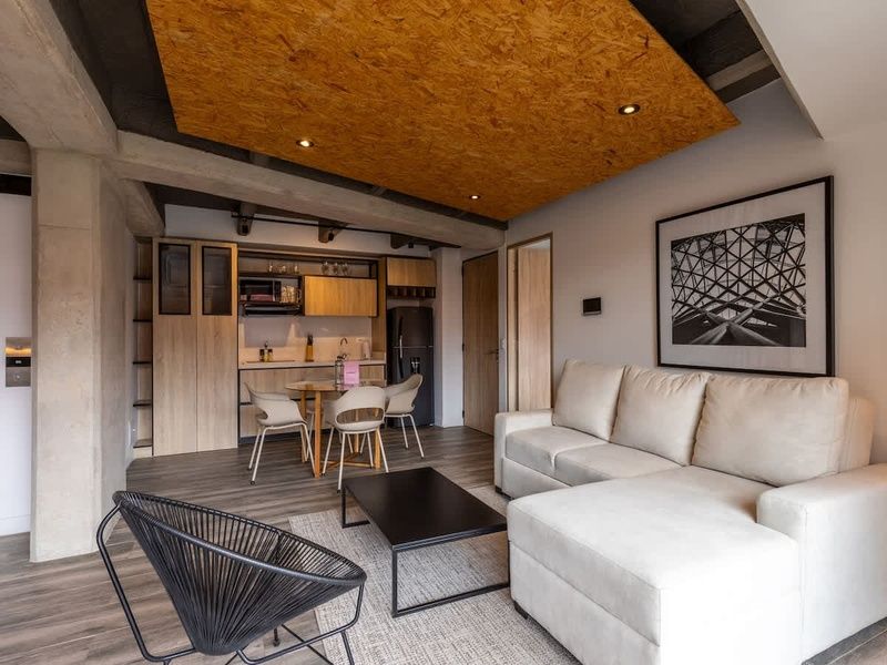 This 60 m^2 apartment in Chapinero is designed for upscale guests seeking to immerse in the city's vibrant culture without sacrificing an exclusive living experience. Tailored for both short and long stays, the apartment offers a unique blend of industrial colors and minimalistic design, creating a sophisticated urban aesthetic. Keyed elevator access provides direct entry from the lobby to the apartment, ensuring privacy and convenience.