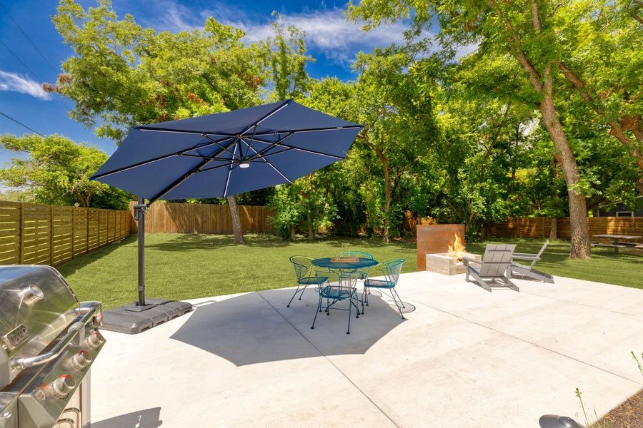 Step outside to enjoy the large backyard where relaxation and outdoor dining come together. Fire up the propane grill, gather around the firepit under the stars, or enjoy a casual meal at the picnic table.