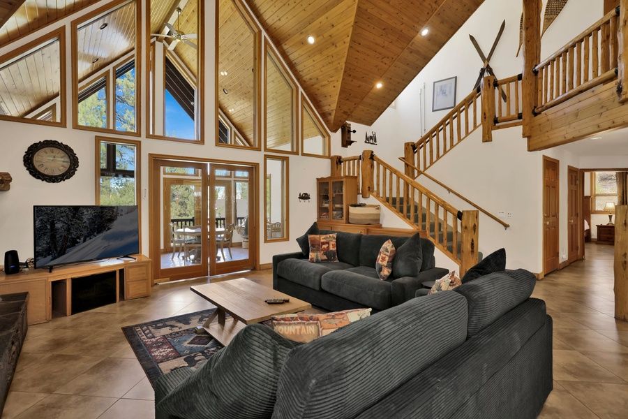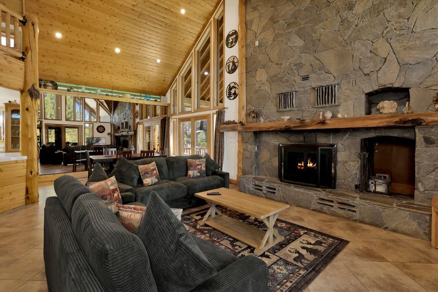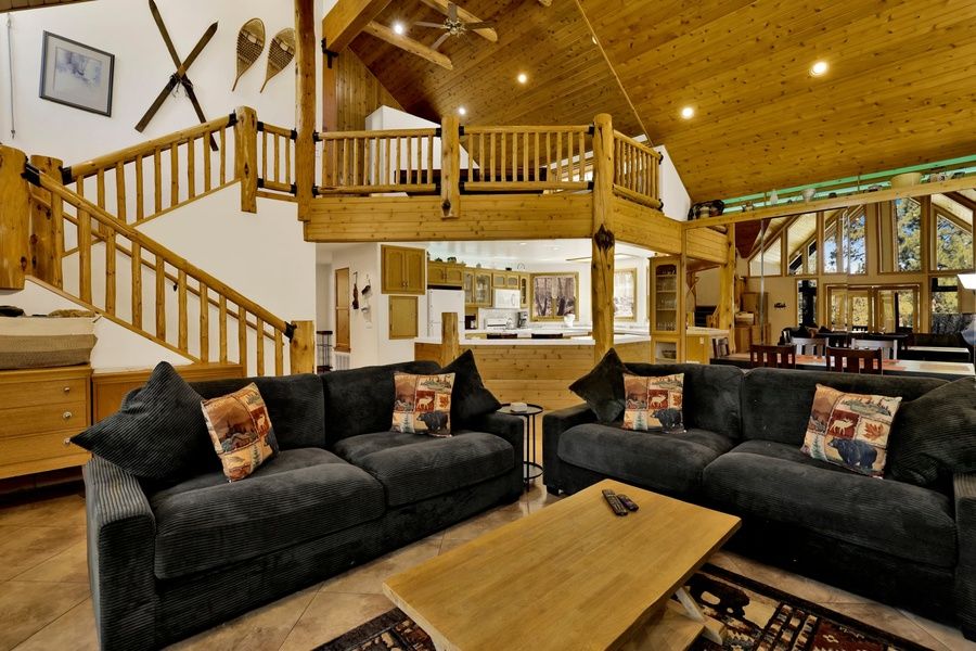 Inside, the home offers spacious living areas perfect for gathering after a day of lakeside adventures or time on the slopes. Large windows bring in the forest light, complementing the rich wood interiors and cozy lodge-style décor. The fully equipped kitchen makes it easy to share meals and moments together, while three well-appointed bedrooms and three bathrooms provide room to unwind comfortably at the end of the day. Whether you're sipping morning coffee before wandering The Village, settling in by the fire after exploring nearby trails, or enjoying an easy walk to evening entertainment, The Village Timber Lodge places you in the ideal location to experience everything Big Bear has to offer without ever needing to get back in your car.