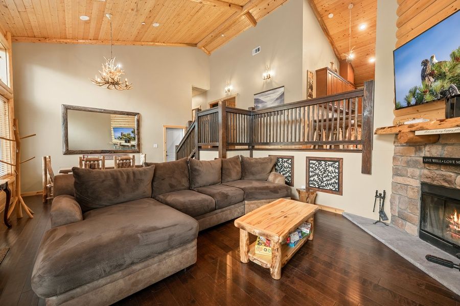 Charming Mountain Retreat in Big Bear. Experience the best of mountain living in this inviting cabin tucked among towering pines and ideally situated just moments from Bear Mountain Ski & Snowboard Resort, the Alpine Zoo, a 9-hole golf course, and popular off-road trails. Designed for both relaxation and adventure, this home offers exceptional comfort and unbeatable convenience. Whether you're relaxing indoors or enjoying the natural surroundings, you'll feel right at home.