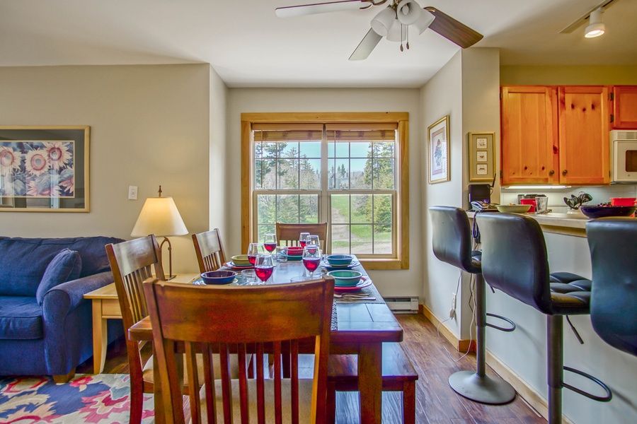 CAMP FOUR -21 - 2 Bedroom - MASTER Bedroom: Pillow. top King Bed, TV/DVD, private full bath: Bedroom -2: 1 set of bunks and 1 twin bed, TV/DVD, hallway full bath, and Queen sofa bed in Living Room. - You can ski right up to your building, take off your gear, and walk in the door to your ski storage entry. End unit, spacious, lots of sunlight and views from windows on 3 sides. Excellent for a family with children. Dining Area overlooks the ski trail. Washer/Dryer. Gas Fireplace. There is a limit of two cars per reservation. Parking passes will be emailed prior to arrival.