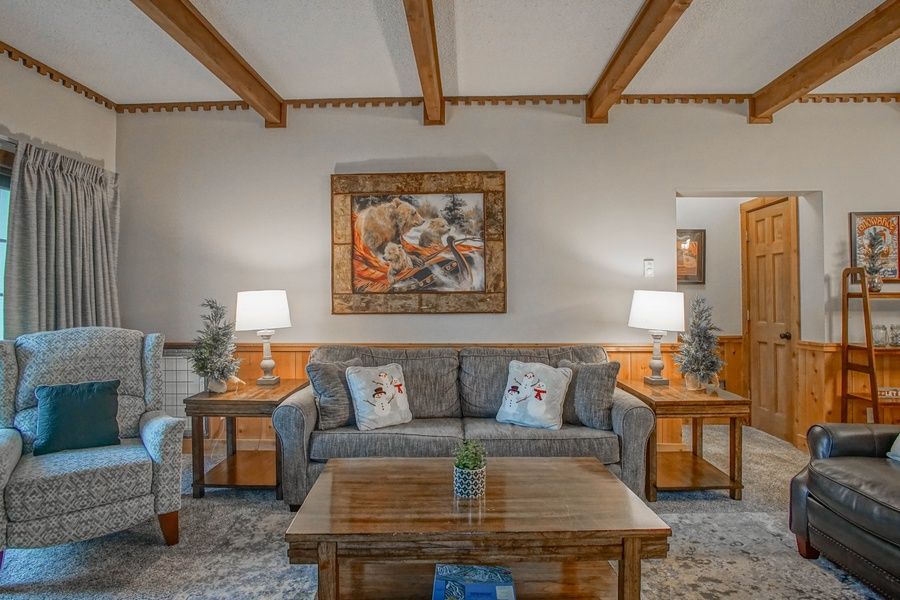 WHISTLEPUNK -28 - 2 BEDROOMS, 2 BATHS: BEDDING: Master BR: Pillowtop King Bed, TV, private full bath, BR -2: 1 Double Bed, 1 Set of Twin/Twin Bunks, TV/DVD. PLUS: Queen Sleeper Sofa and TV in the Living Room. Ski Storage Entry. Deck overlooks the trails. Wood Fireplace (wood provided). Newly renovated second bathroom with heated floors and the Kitchen floors are heated! An excellent place for a couple with children with up to 5 children, or 2 couples together. This unit is located lower level, walk out onto the slope, just off Whistlepunk Trail, a Novice run leading to the entire trail system. Across the street from the Double Black Diamond trails of Western Territory.
