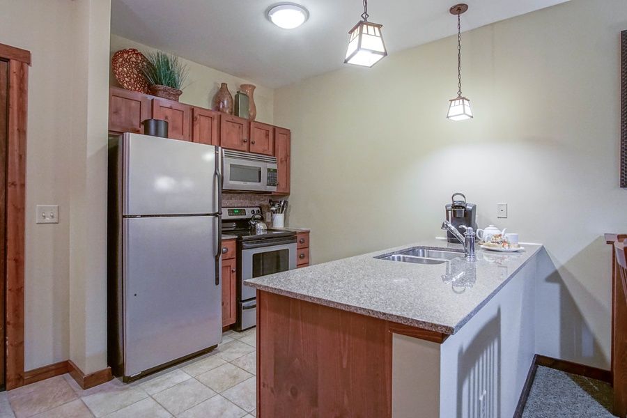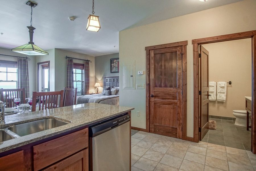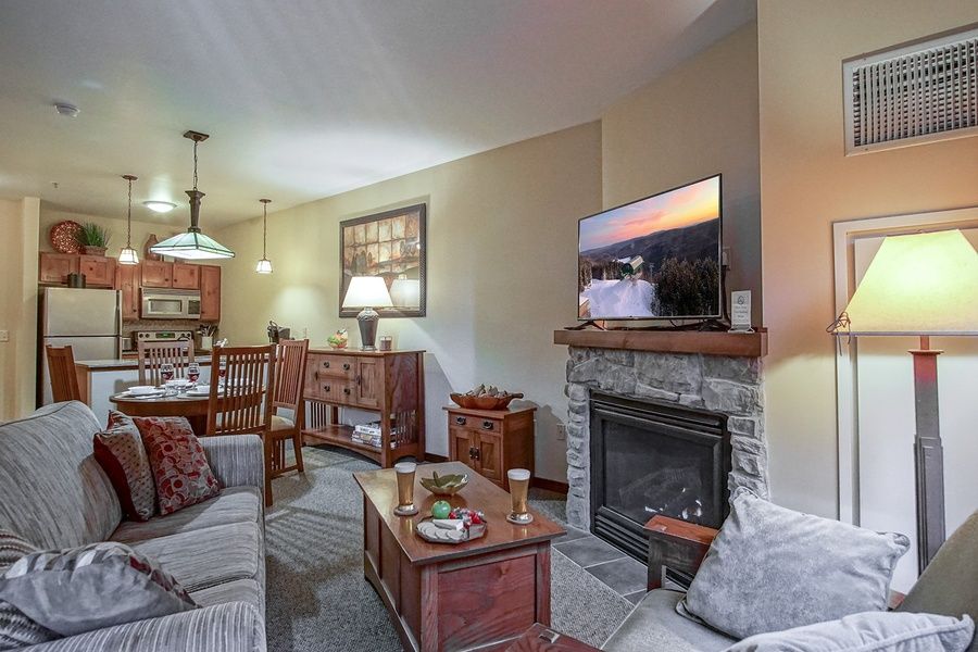 Soaring Eagle 315 - 1 Bedroom Studio, 1 Full Bath- Bedding : 1Q,1SS. Enjoy the sunset from atop Snowshoe Mountain in this comfortable, well-equipped west-facing studio apartment. this studio has a queen-size bed and queen-size sleeper sofa, flat screen TV and gas fireplace, a fully equipped kitchenette and dining table for four, a bathroom with a walk-in shower and a small patio. No washer or dryer in the unit, however, laundry facilities are available on site.
